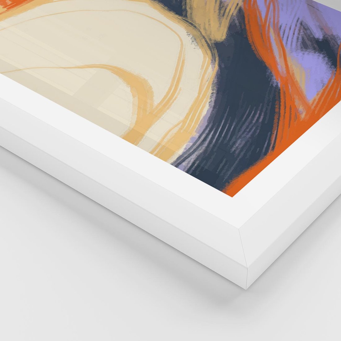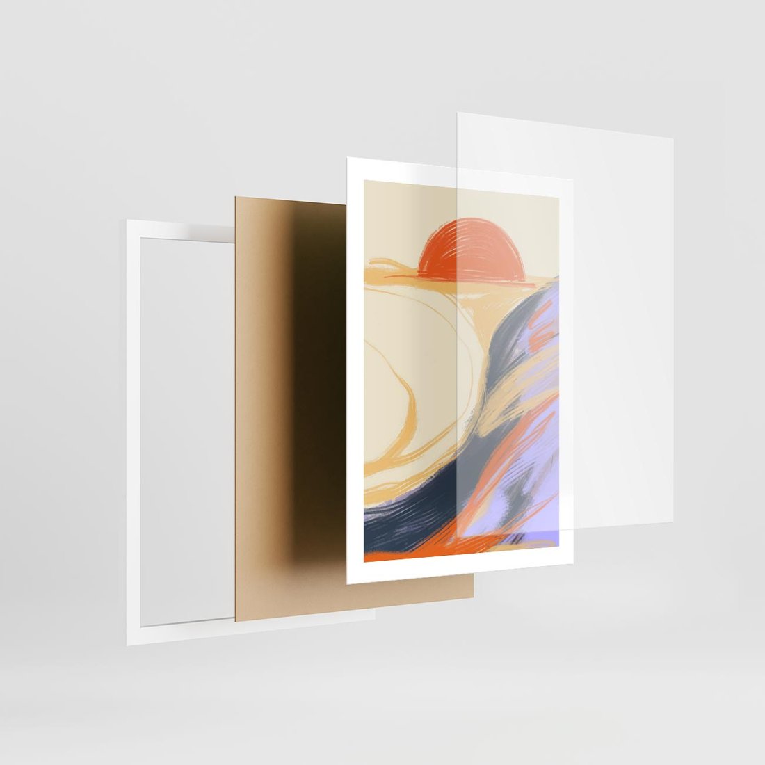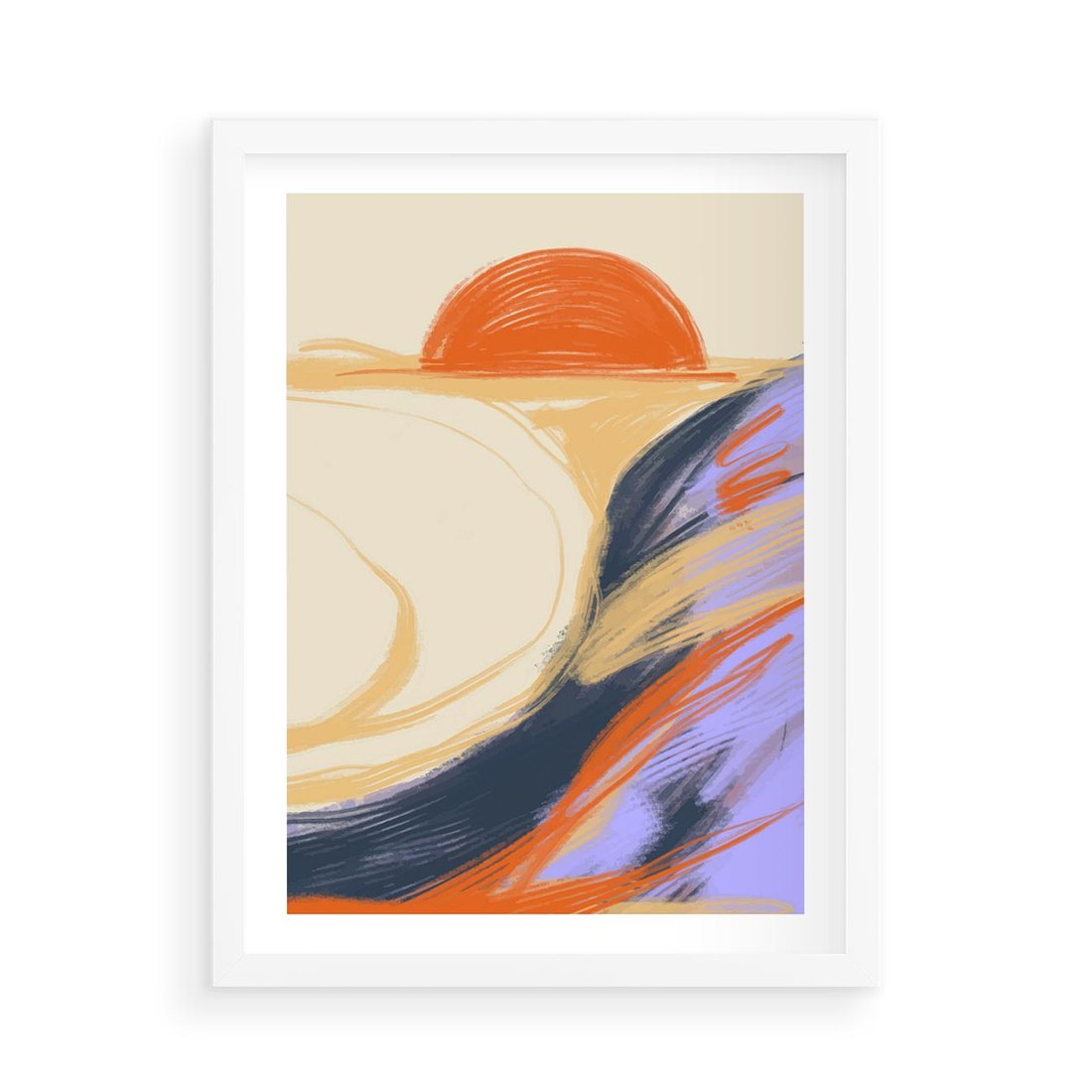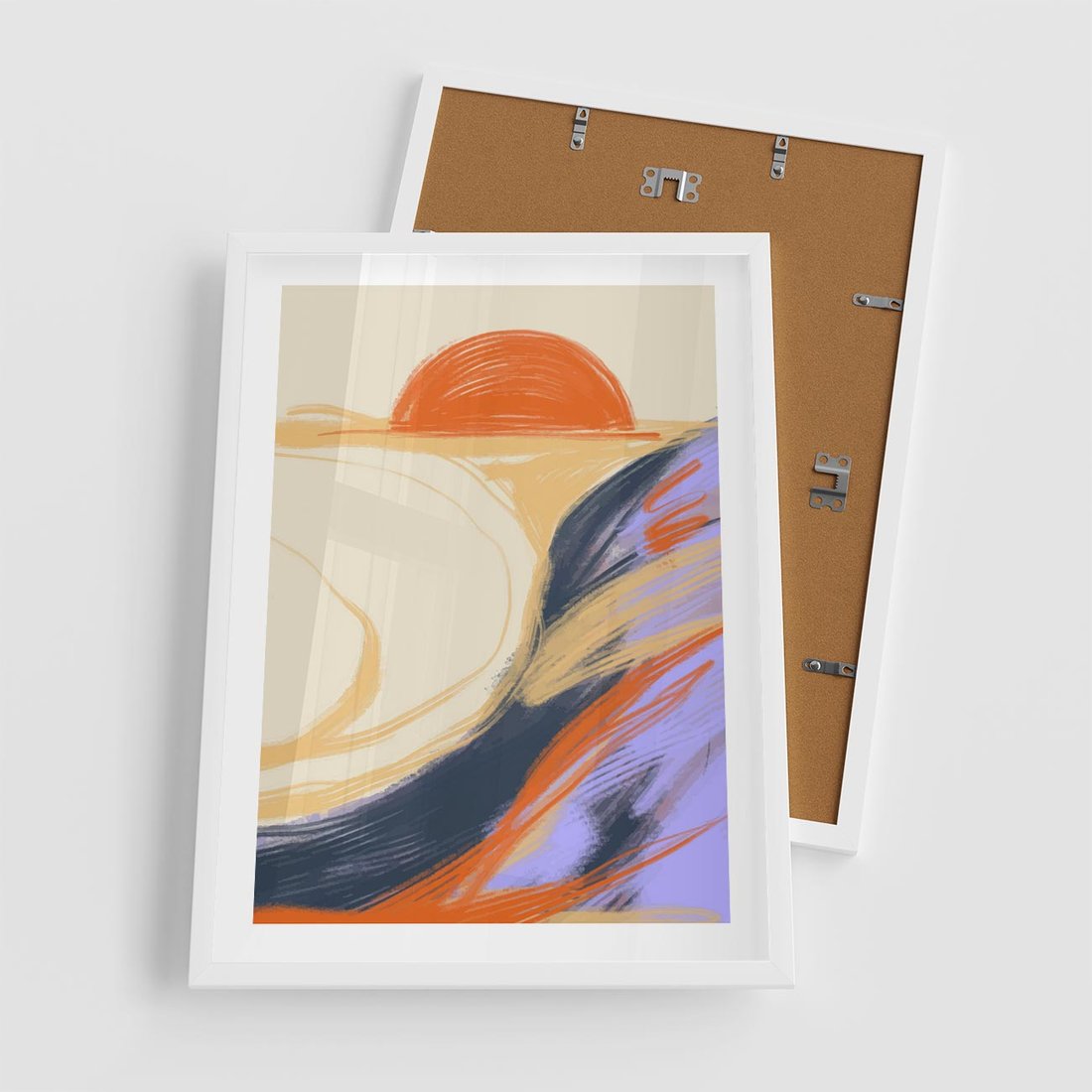 Plakat w ramie 50x70 - Pomarańczowy Horyzont - pastelowy krajobraz, nowoczesny plakat - rama biała