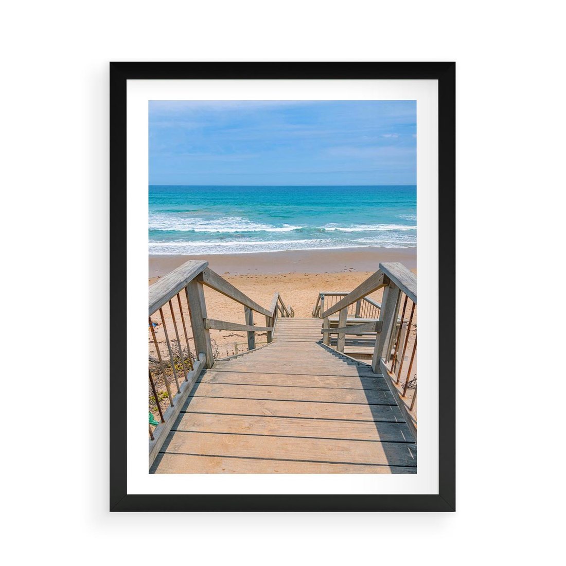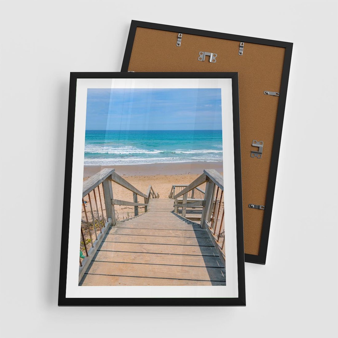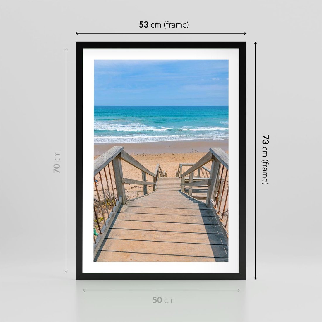 Plakat w ramie 50x70 - Pomost ku Morzu - pomost na plaży, morze - rama czarna
