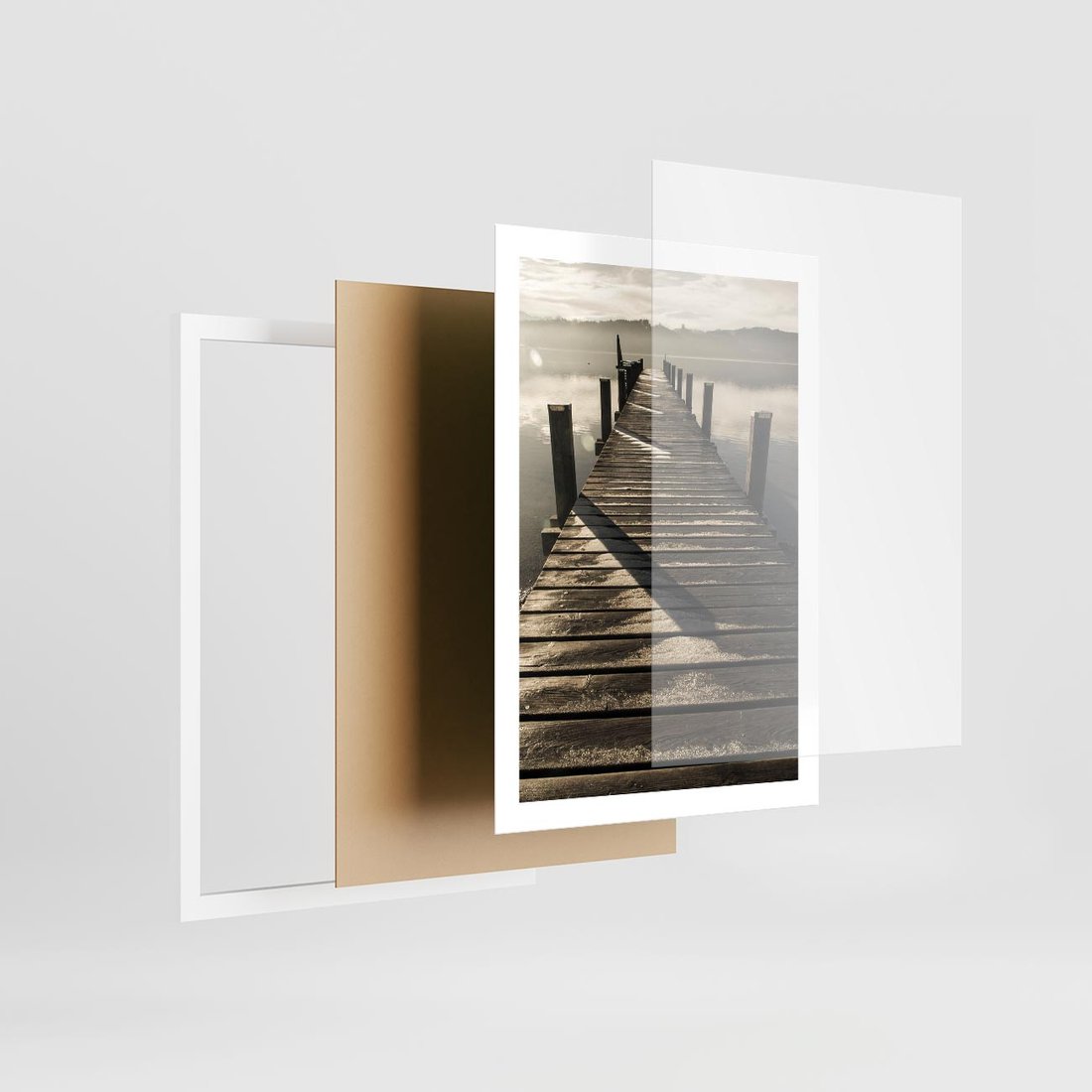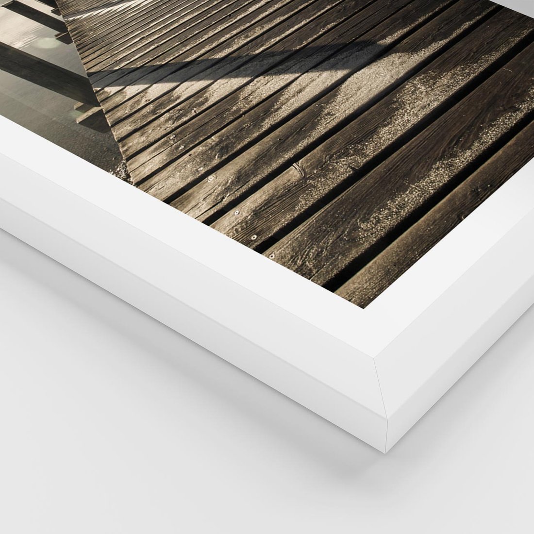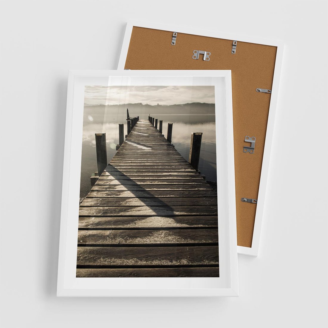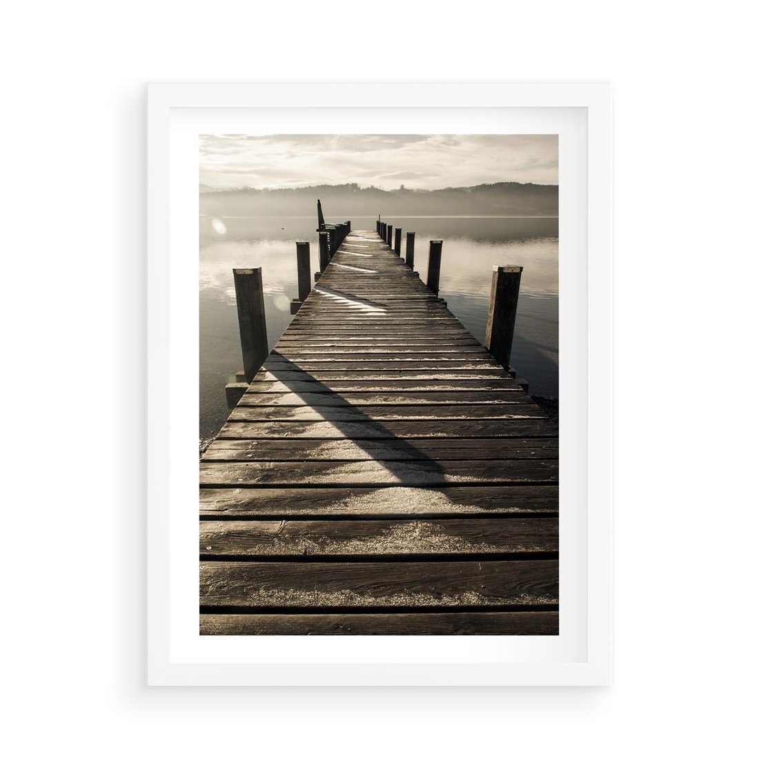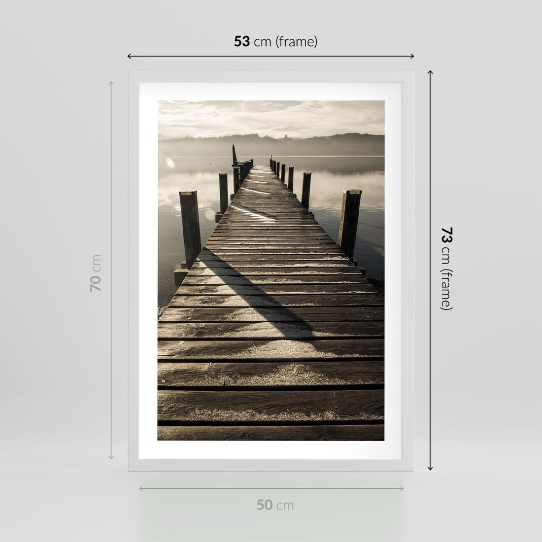 Plakat w ramie 50x70 - Pomost nad jeziorem - pomost, jezioro - rama biała