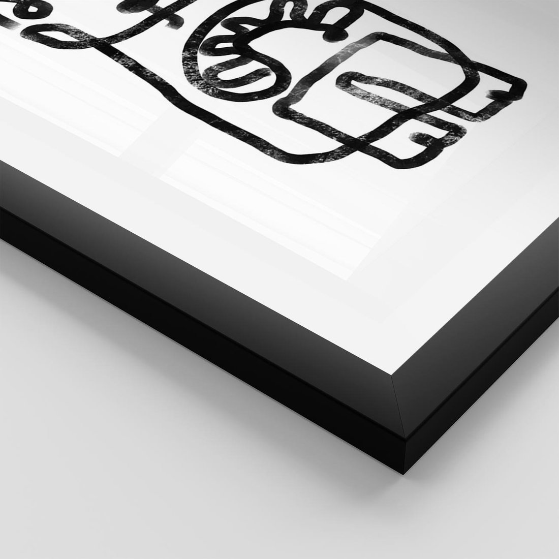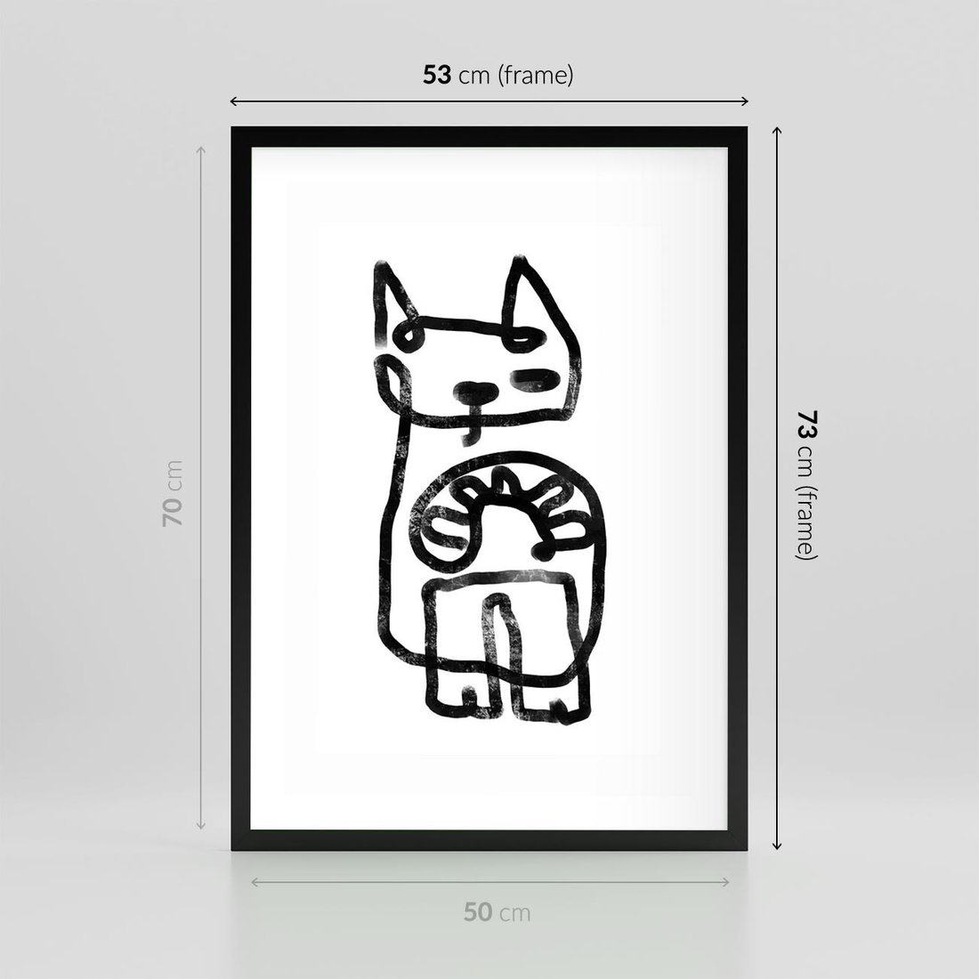 Plakat w ramie 50x70 - Portret Kociej Duszy - szkic kota, prymitywizm - rama czarna