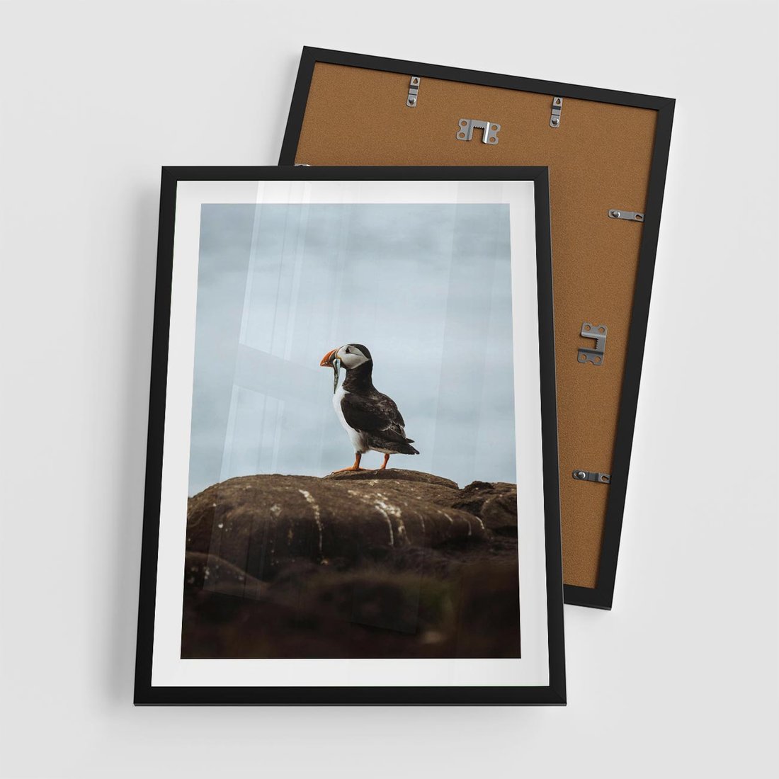 Plakat w ramie 50x70 - Portret Ptaka Morskiego - maskonur, ptak - rama czarna