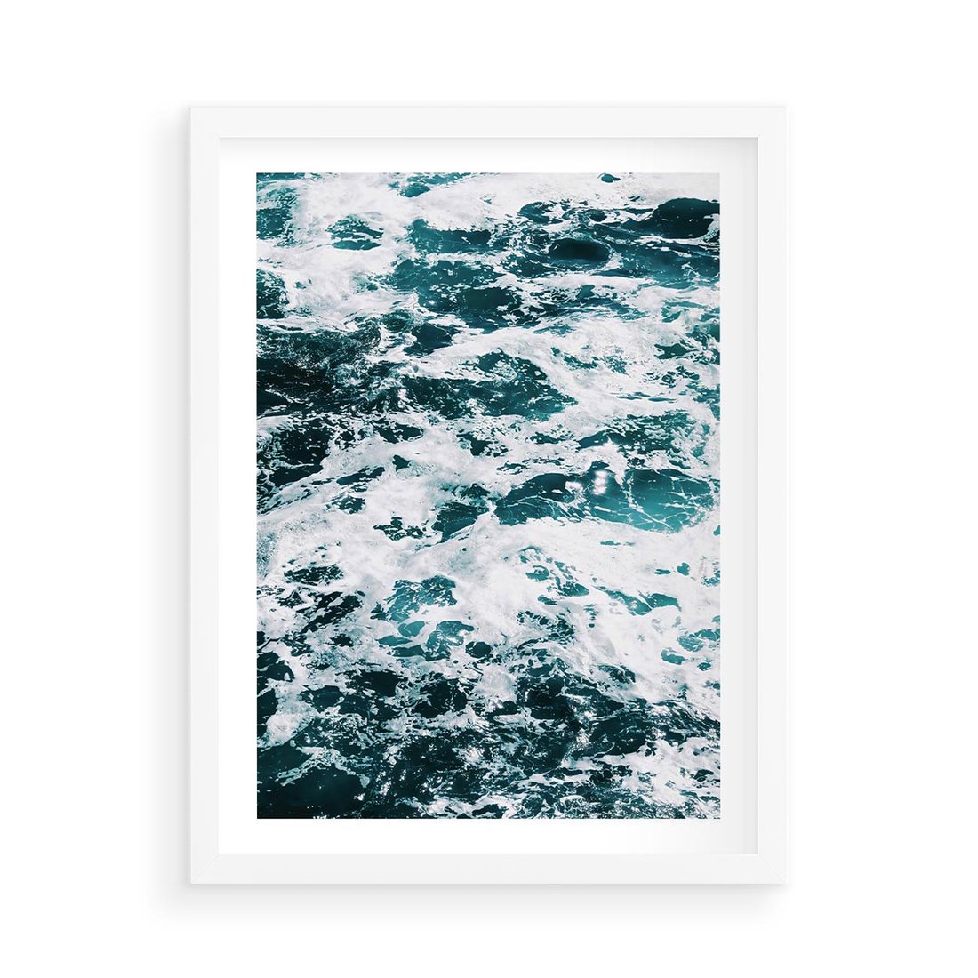 Plakat w ramie 50x70 - Potęga Natury: Wzburzone Fale Oceanu - wzburzone fale oceanu - rama biała