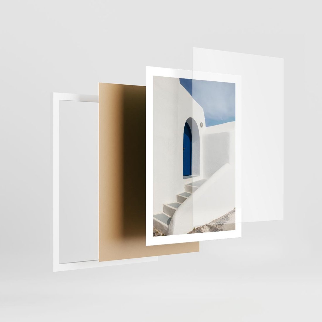 Plakat w ramie 50x70 - Powitanie Wyspy - Santorini, drzwi - rama biała
