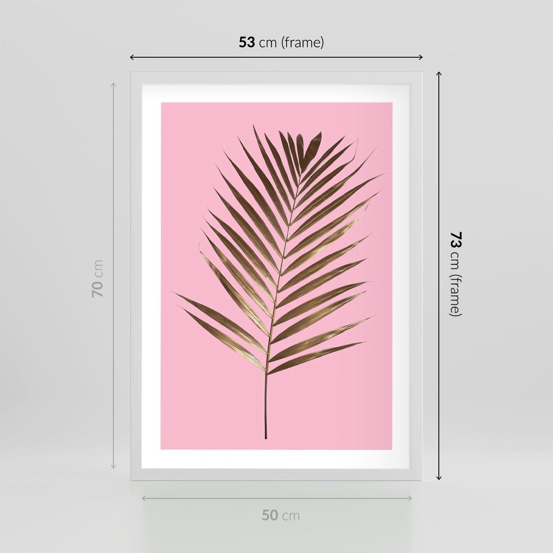 Plakat w ramie 50x70 - Promienie złotej palmy - złota, palma - rama biała