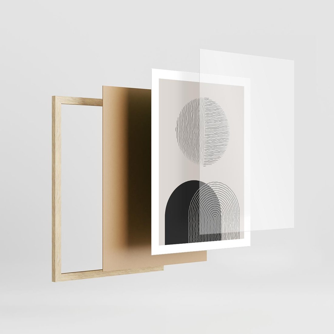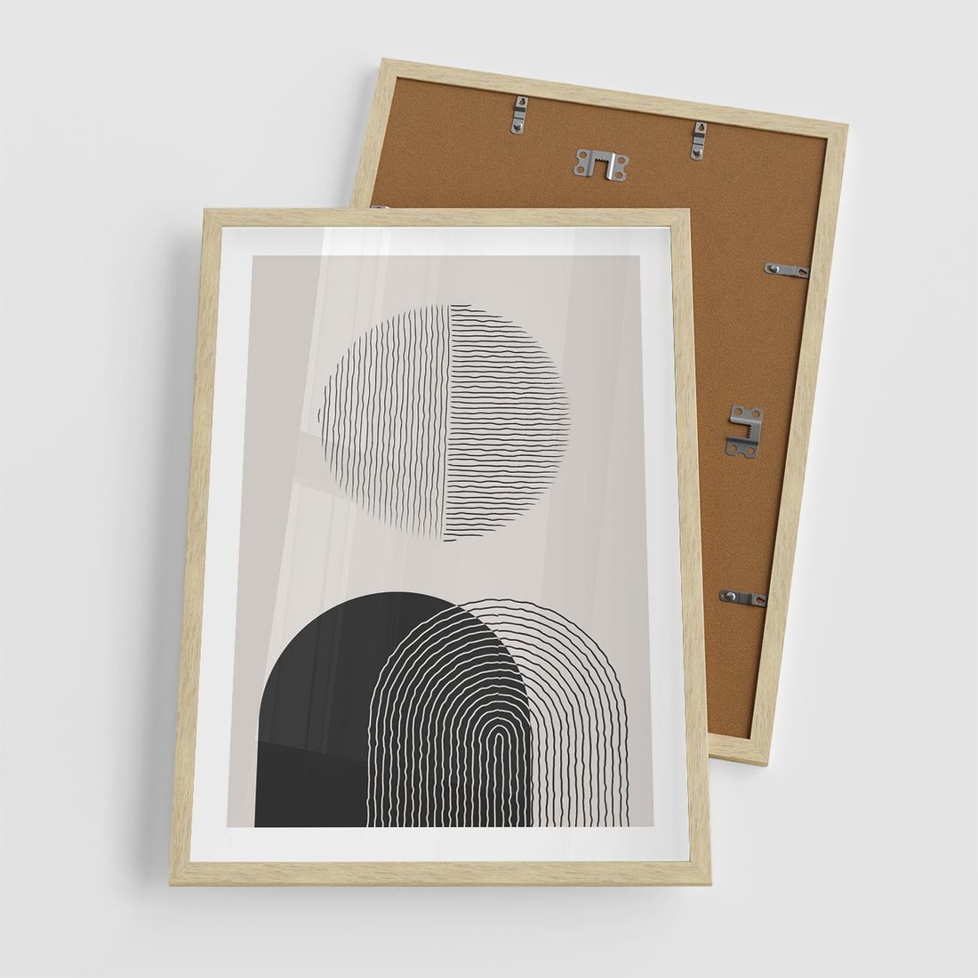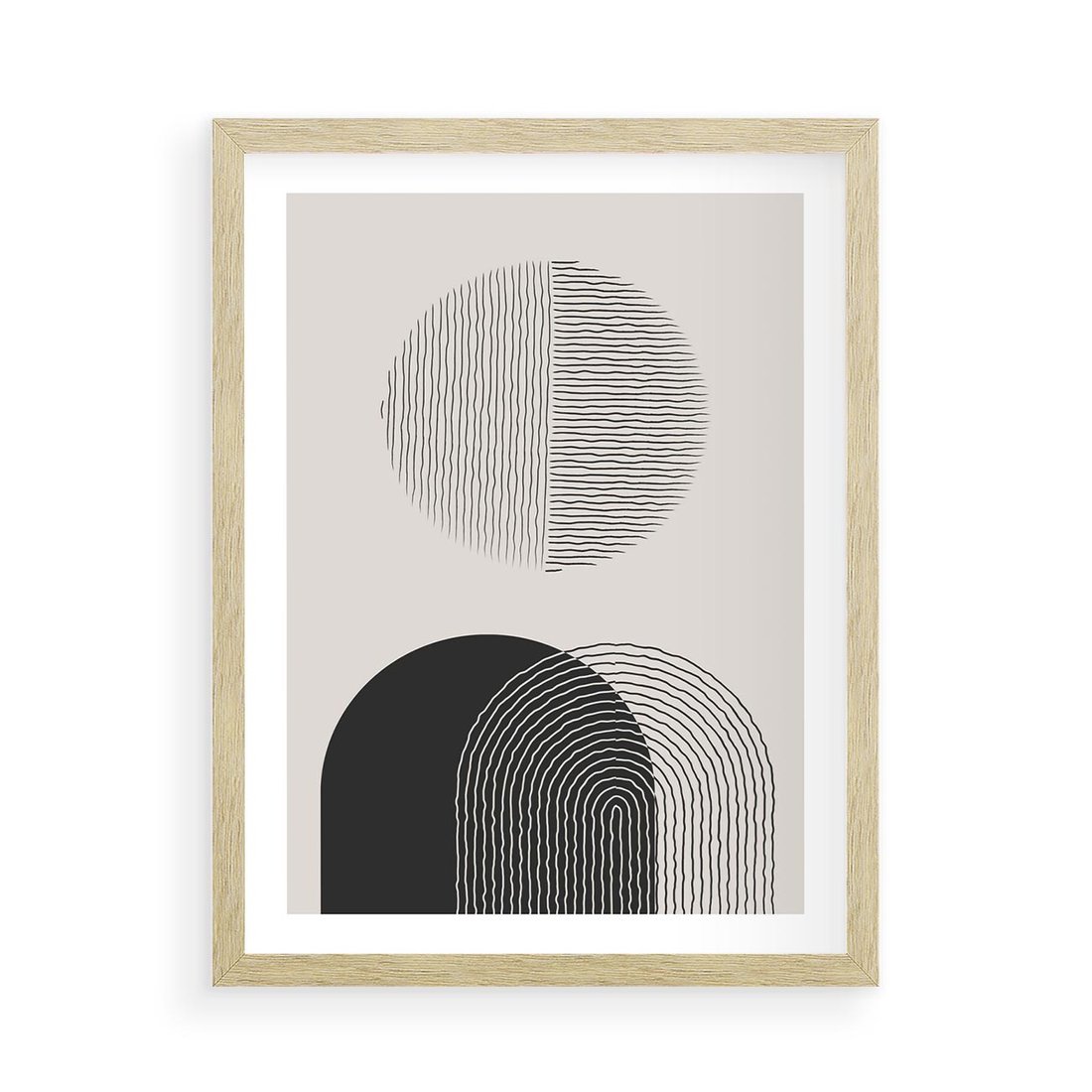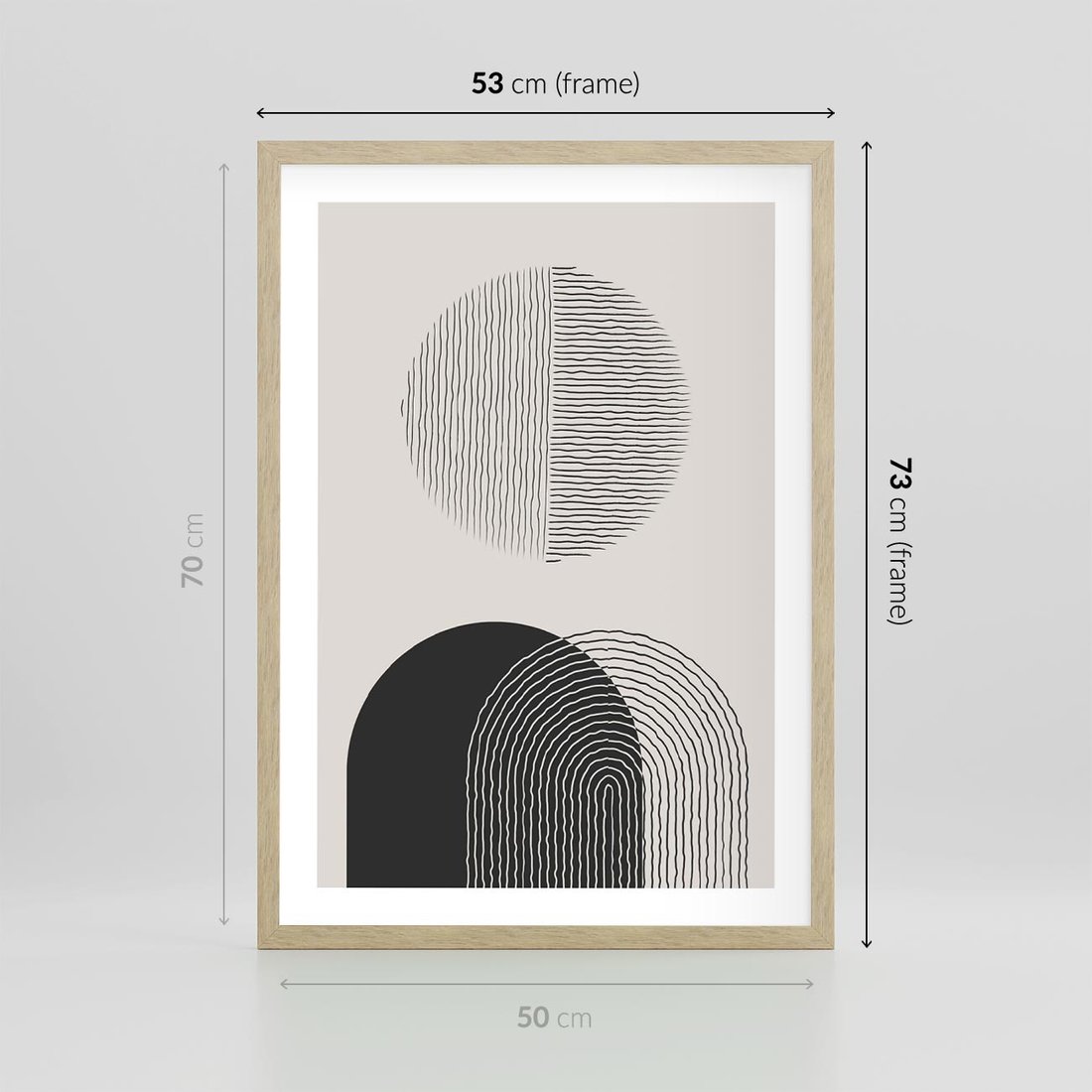 Plakat w ramie 50x70 - Przenikająca Rzeczywistość - abstrakcyjna kompozycja, okręgi i półokręgi - rama drewno