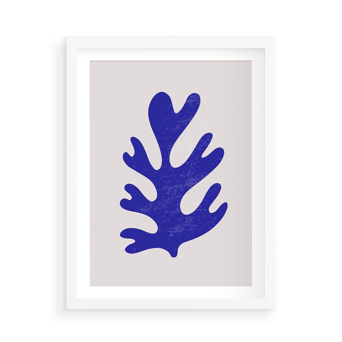 Plakat w ramie 50x70 - Przenikająca Struktura - boho plakat, niebieski liść w intensywnym kolorze - rama biała