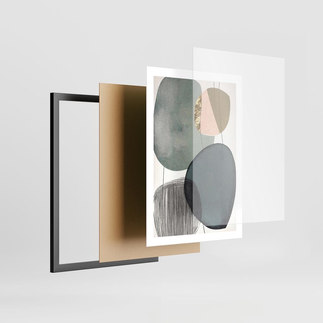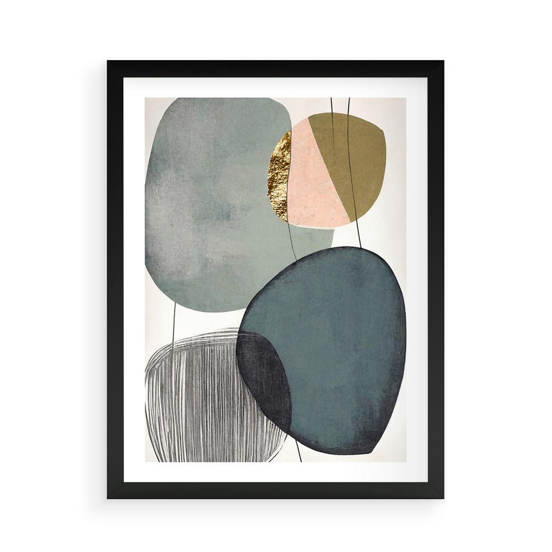 Plakat w ramie 50x70 - Przenikające Formy Duszy - abstrakcyjny obraz, geometryczne obłe formy - rama czarna
