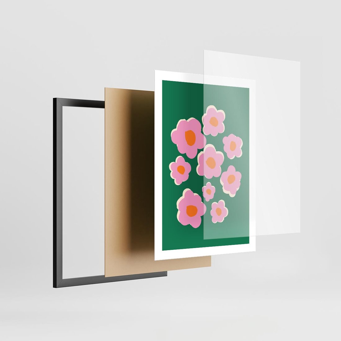 Ten abstrakcyjny plakat w boho stylu przenosi naturę do Twojego salonu, łącząc intensywną zieleń i róż z subtelnie ukazanymi kwiatowymi motywami. Tworzy on niepowtarzalną atmosferę w przestrzeni, zachęcając do relaksu i podziwiania piękna otaczającego świata.