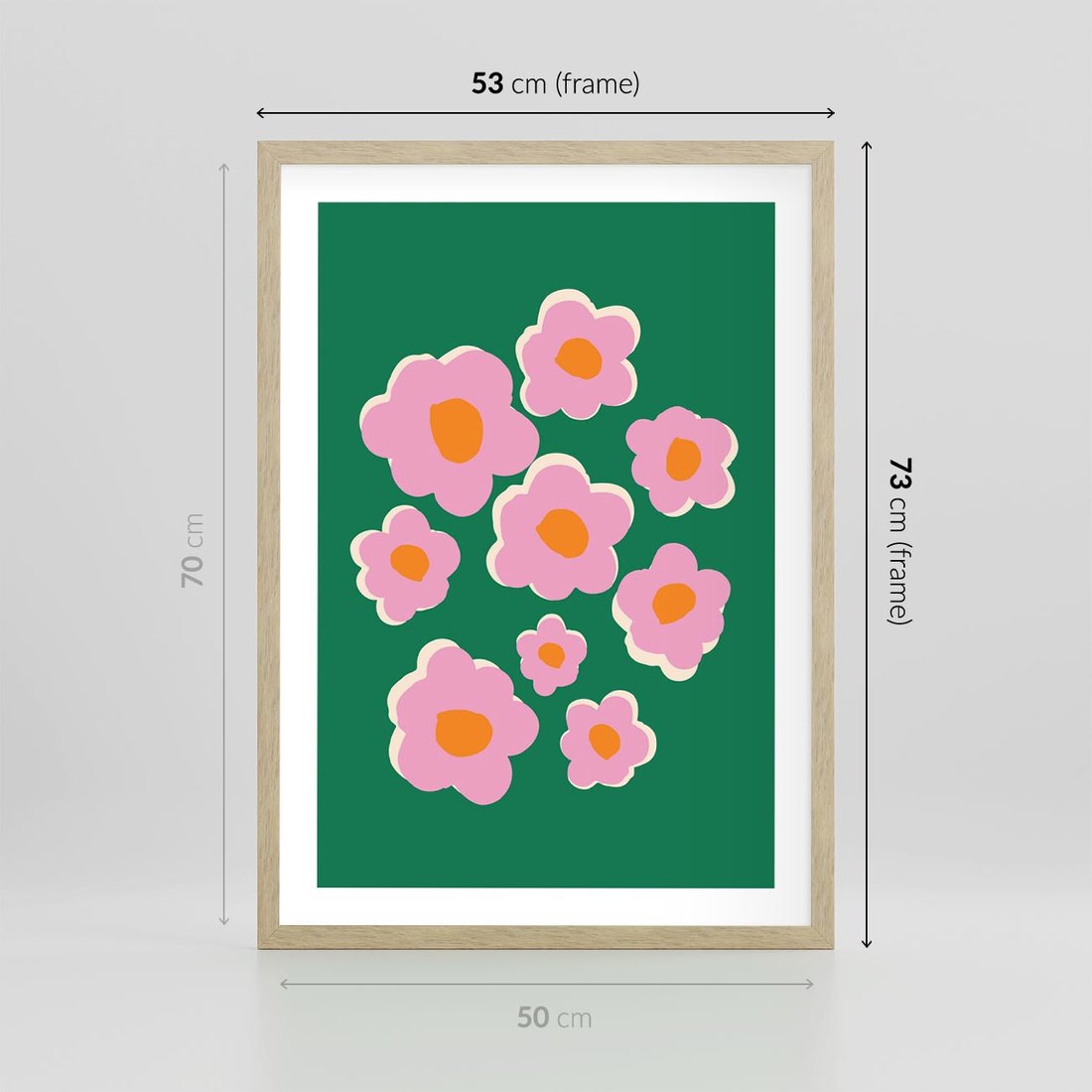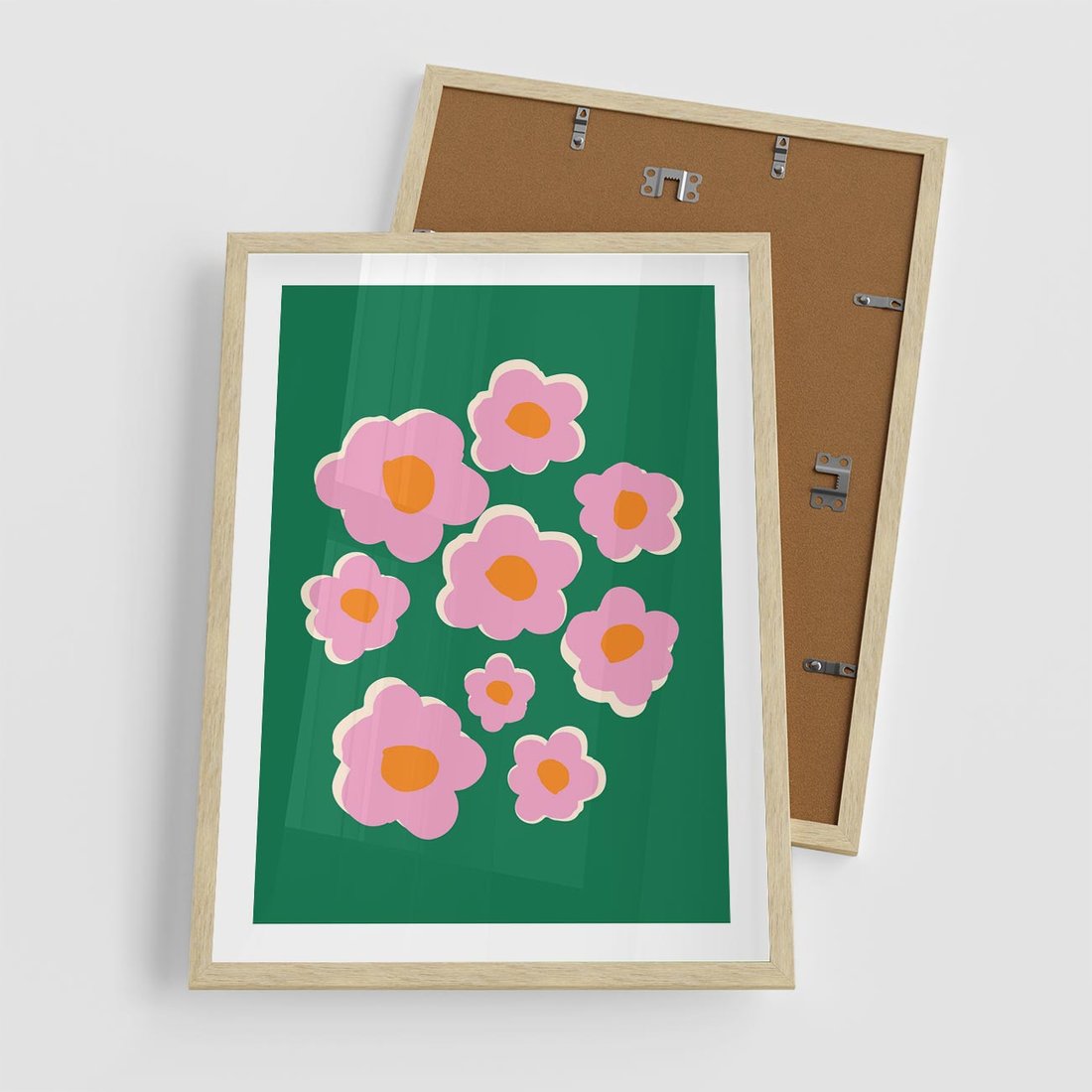Ten abstrakcyjny plakat w boho stylu przenosi naturę do Twojego salonu, łącząc intensywną zieleń i róż z subtelnie ukazanymi kwiatowymi motywami. Tworzy on niepowtarzalną atmosferę w przestrzeni, zachęcając do relaksu i podziwiania piękna otaczającego świata.