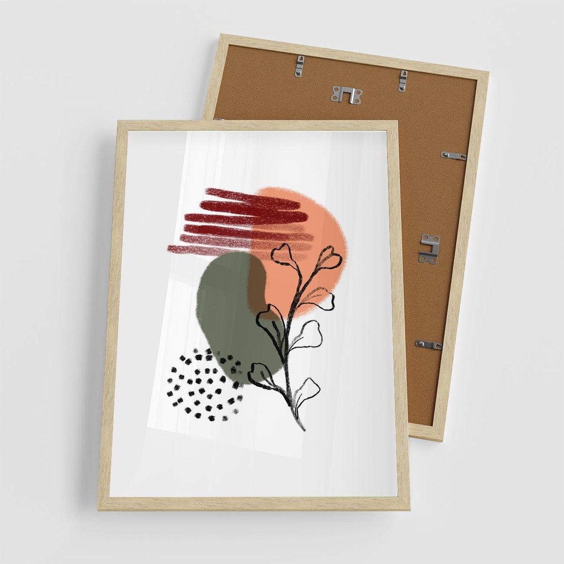 Plakat w ramie 50x70 - Przenikające Widzenia - abstrakcyjna sztuka, liście - rama drewno