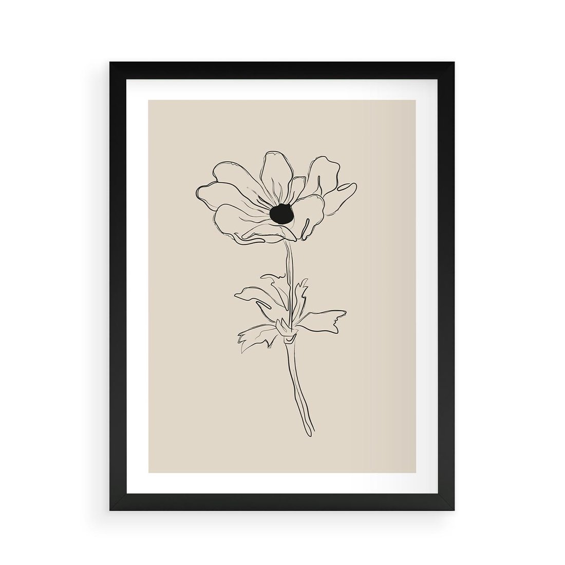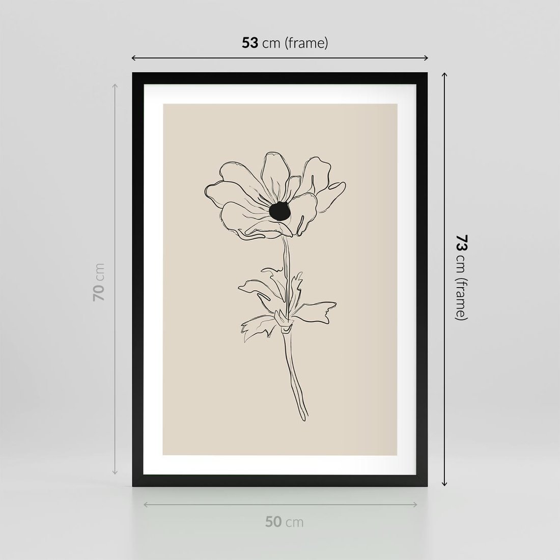 Plakat w ramie 50x70 - Przenikający Dialog - szkic kwiatu, mnimalistyczny szkic - rama czarna
