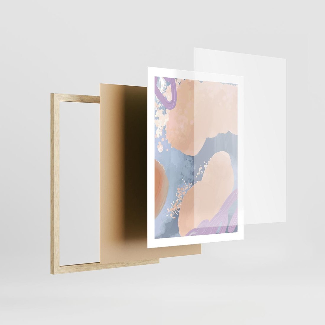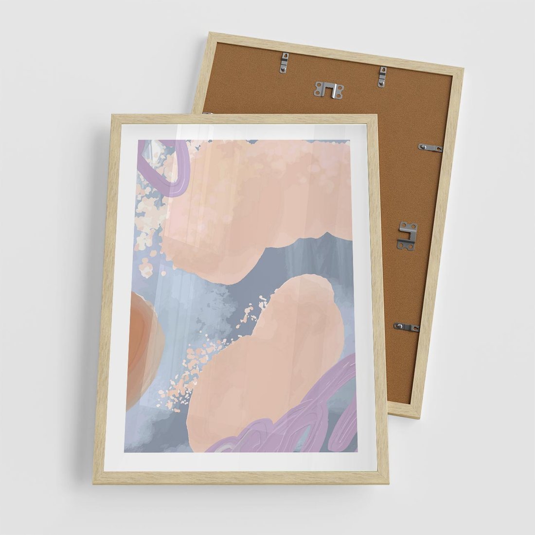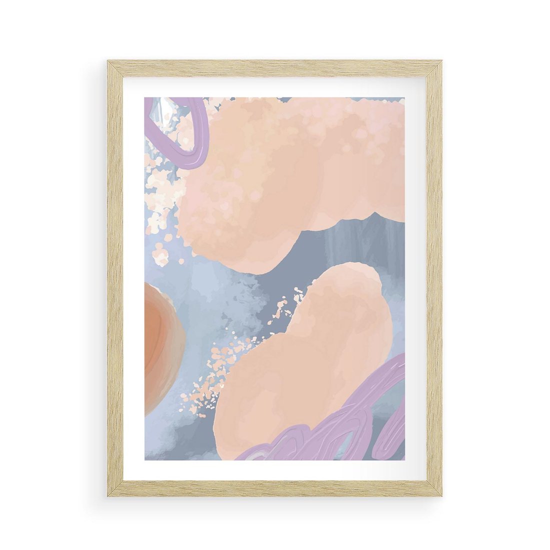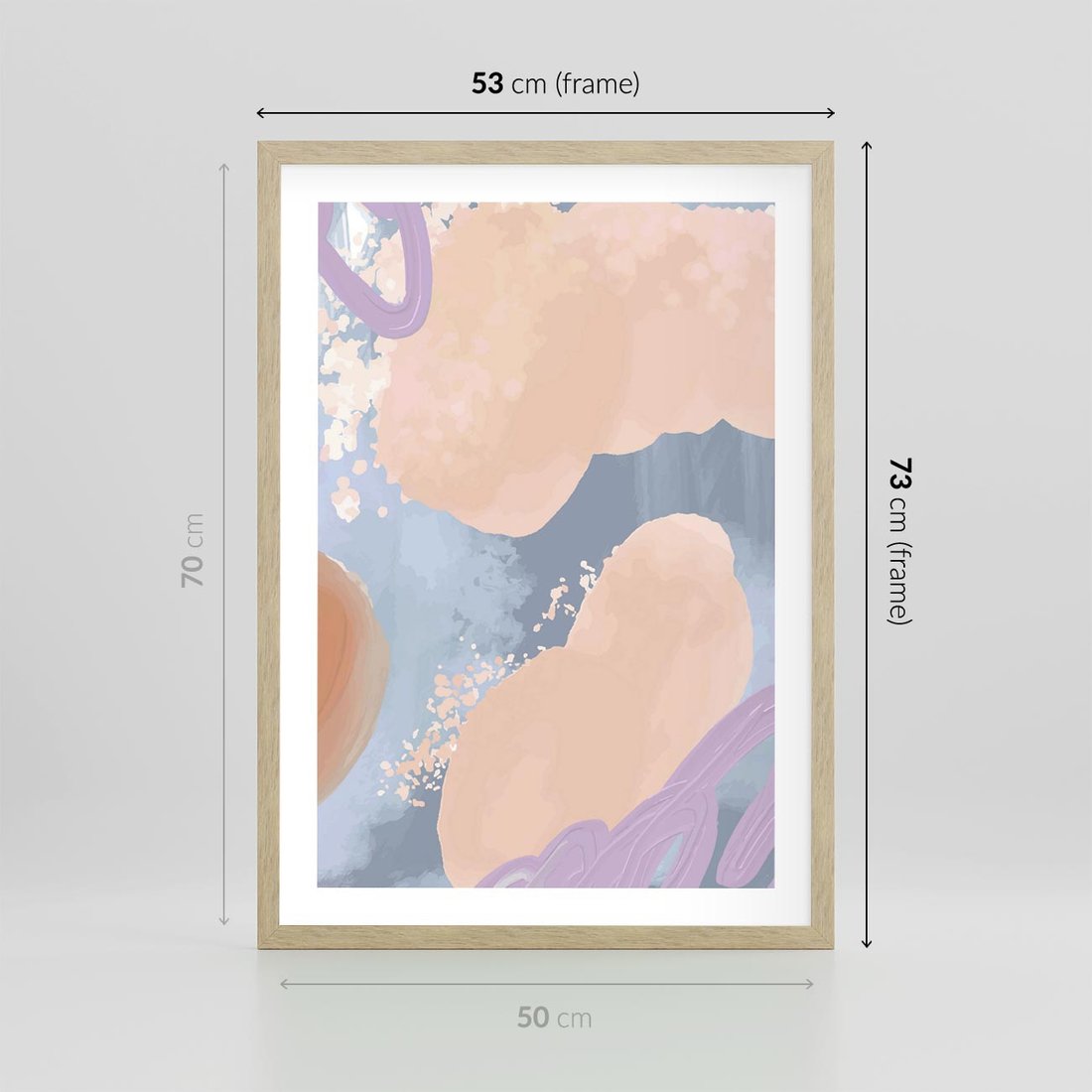 Plakat w ramie 50x70 - Przenikanie Niecodziennych Form - abstrakcyjne akwarelowe plamy, pastele - rama drewno