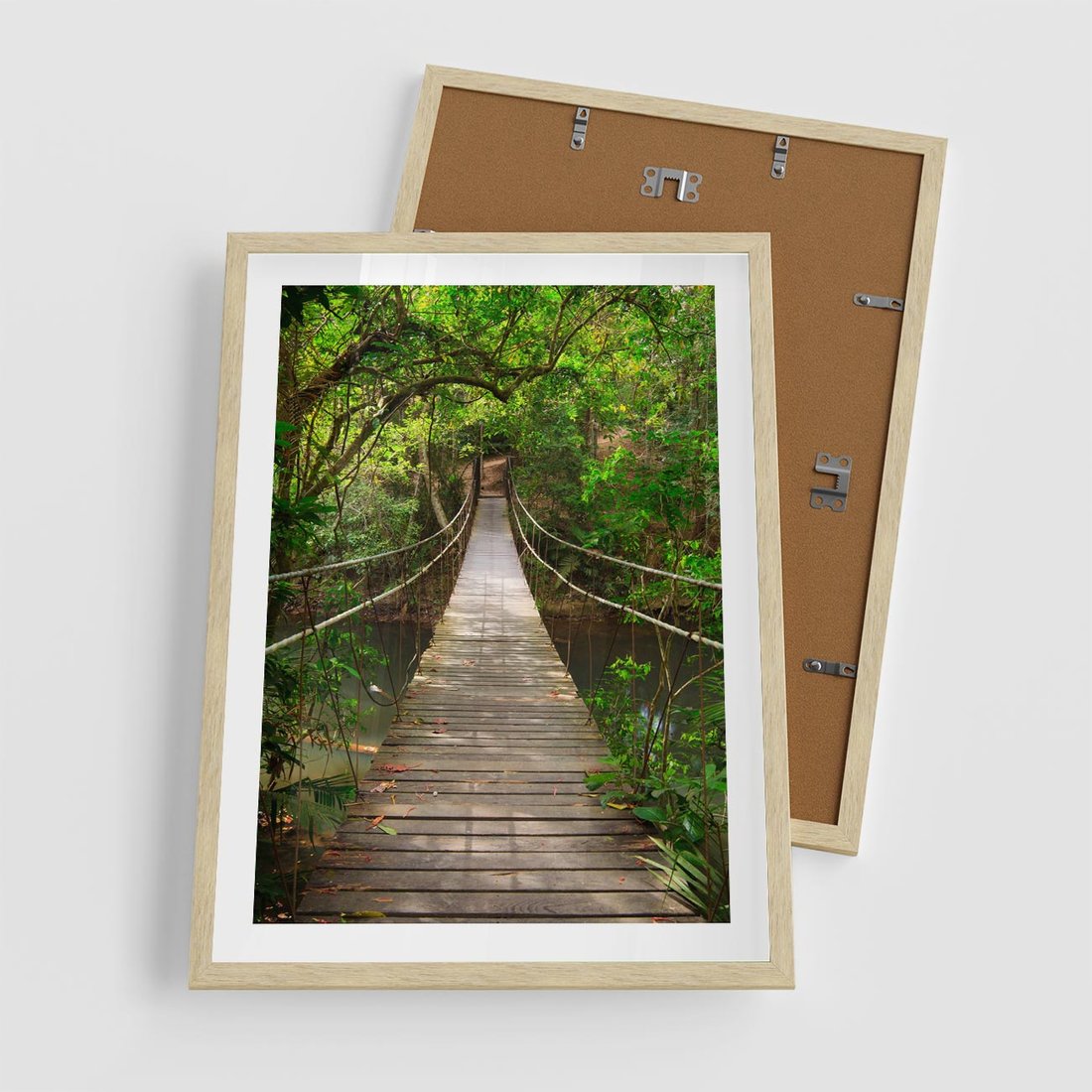 Plakat w ramie 50x70 - Przez Dżunglę - most, linowy - rama drewno