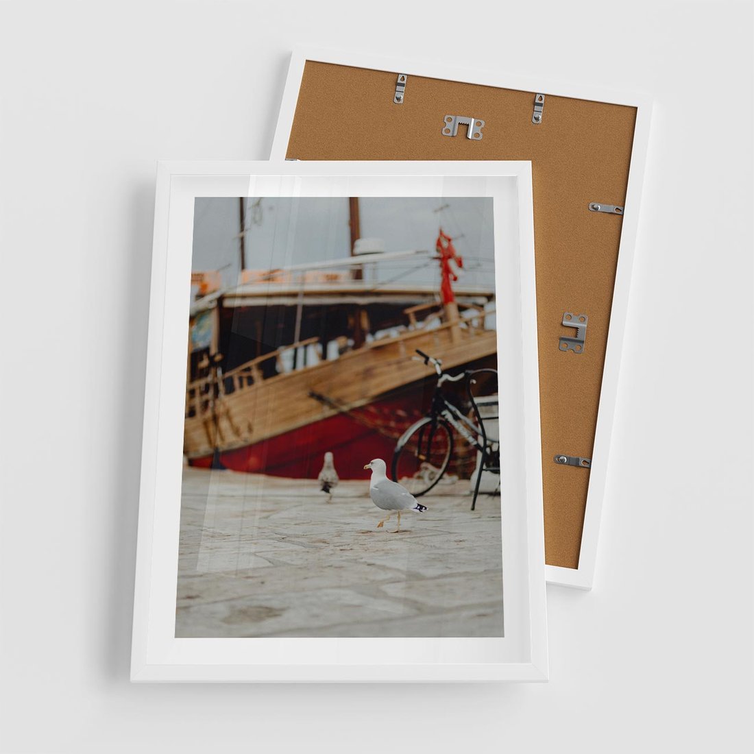 Plakat w ramie 50x70 - Przygoda na Horyzoncie - port, statek - rama biała