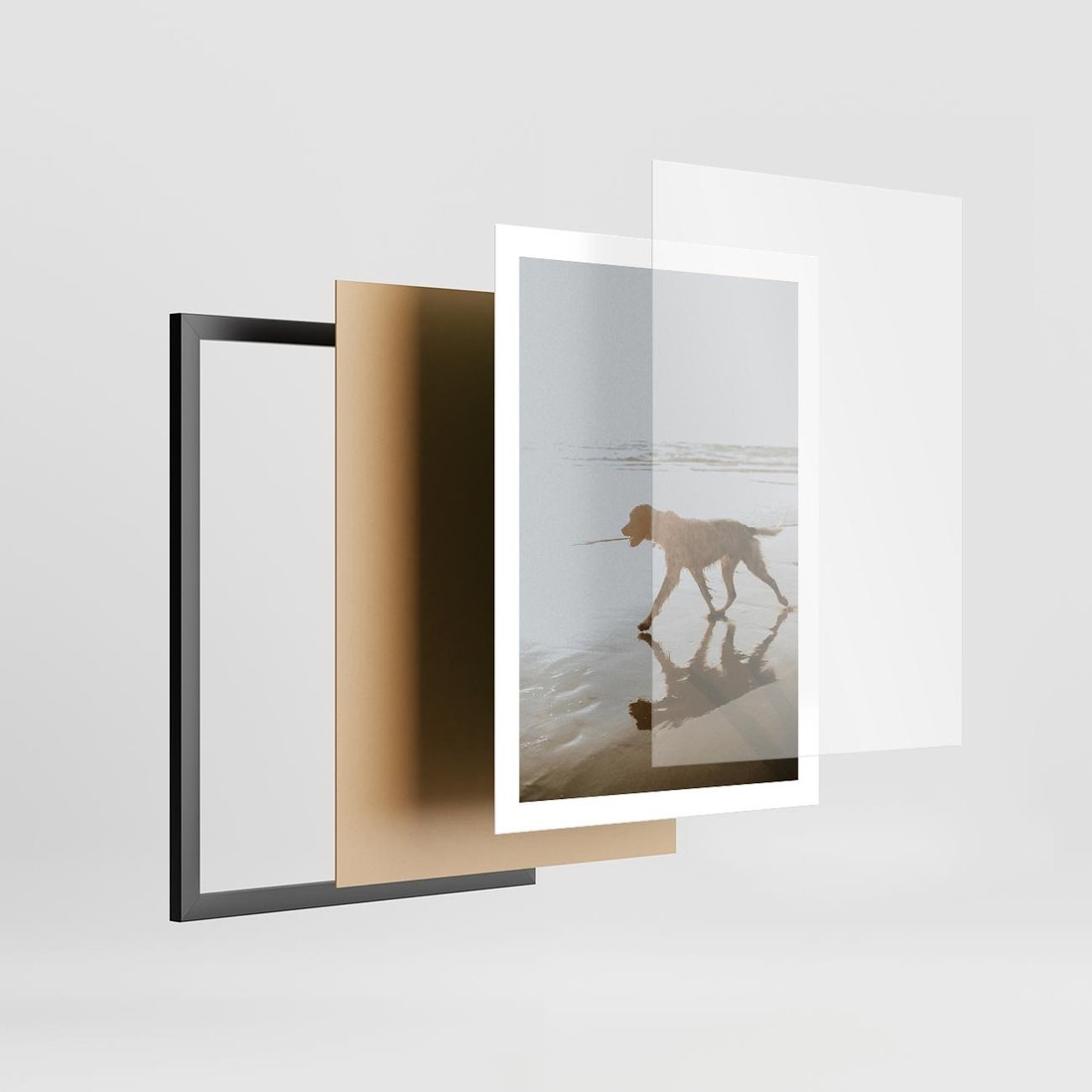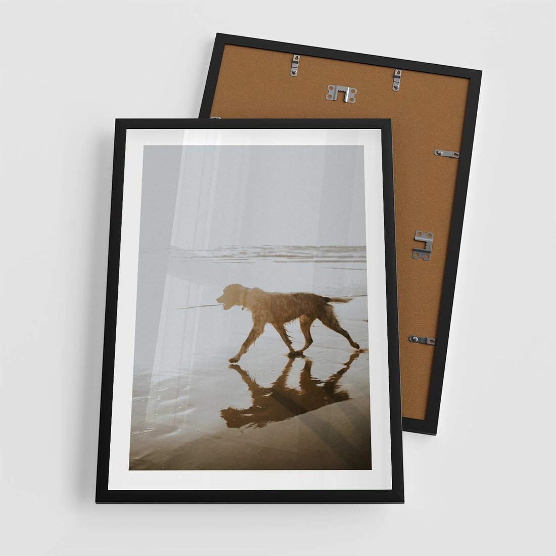 Plakat w ramie 50x70 - Przyjaciel na Plaży - pies, na plaży - rama czarna