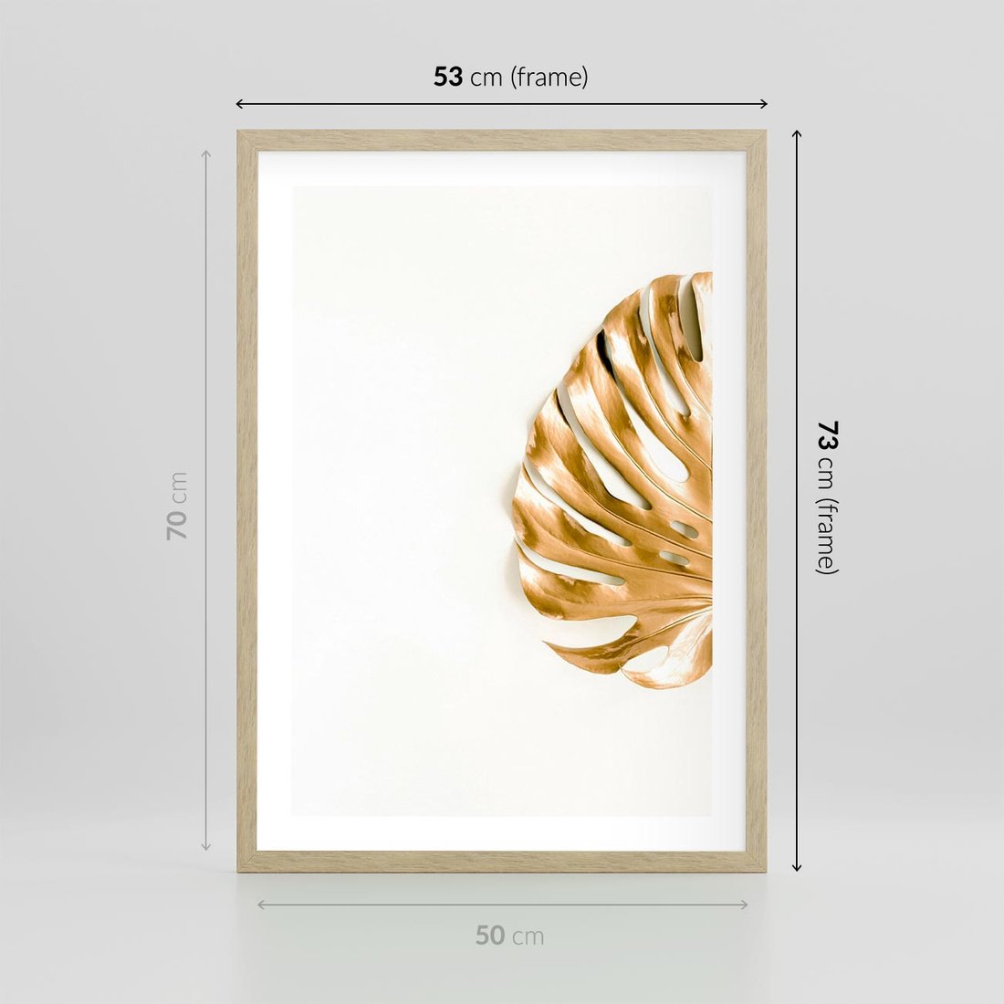 Plakat w ramie 50x70 - Przyjemność dla Oczu - złote, liście - rama drewno