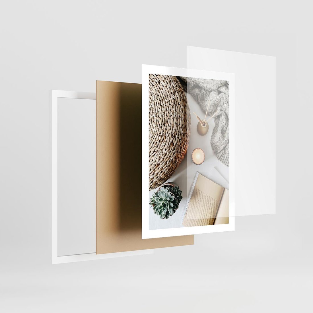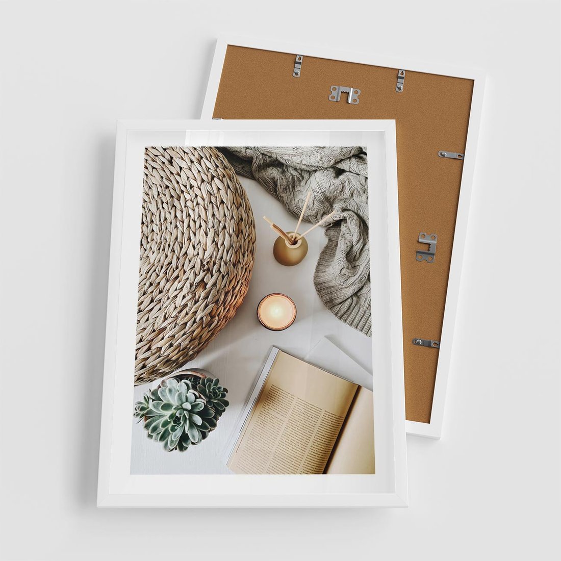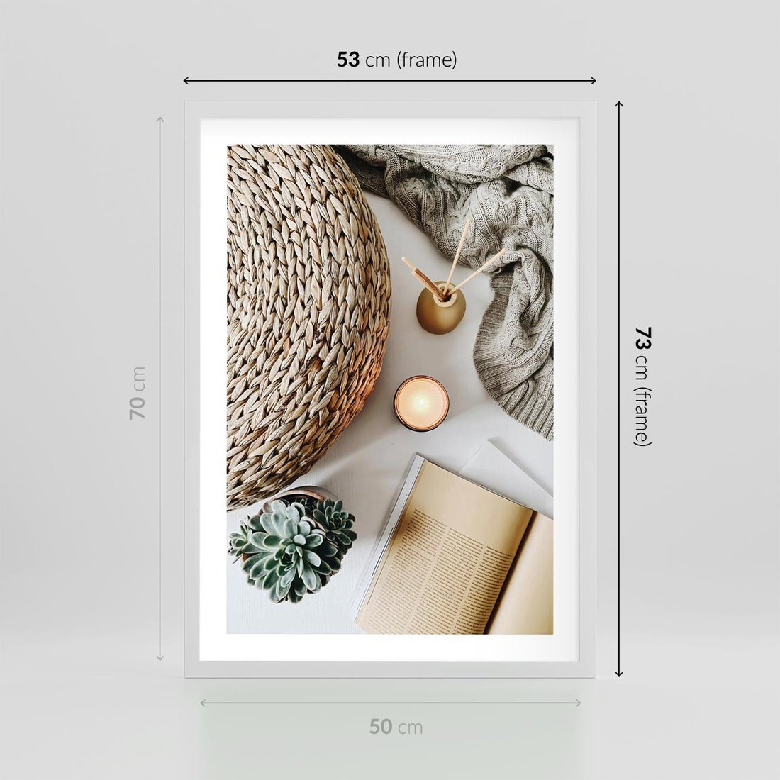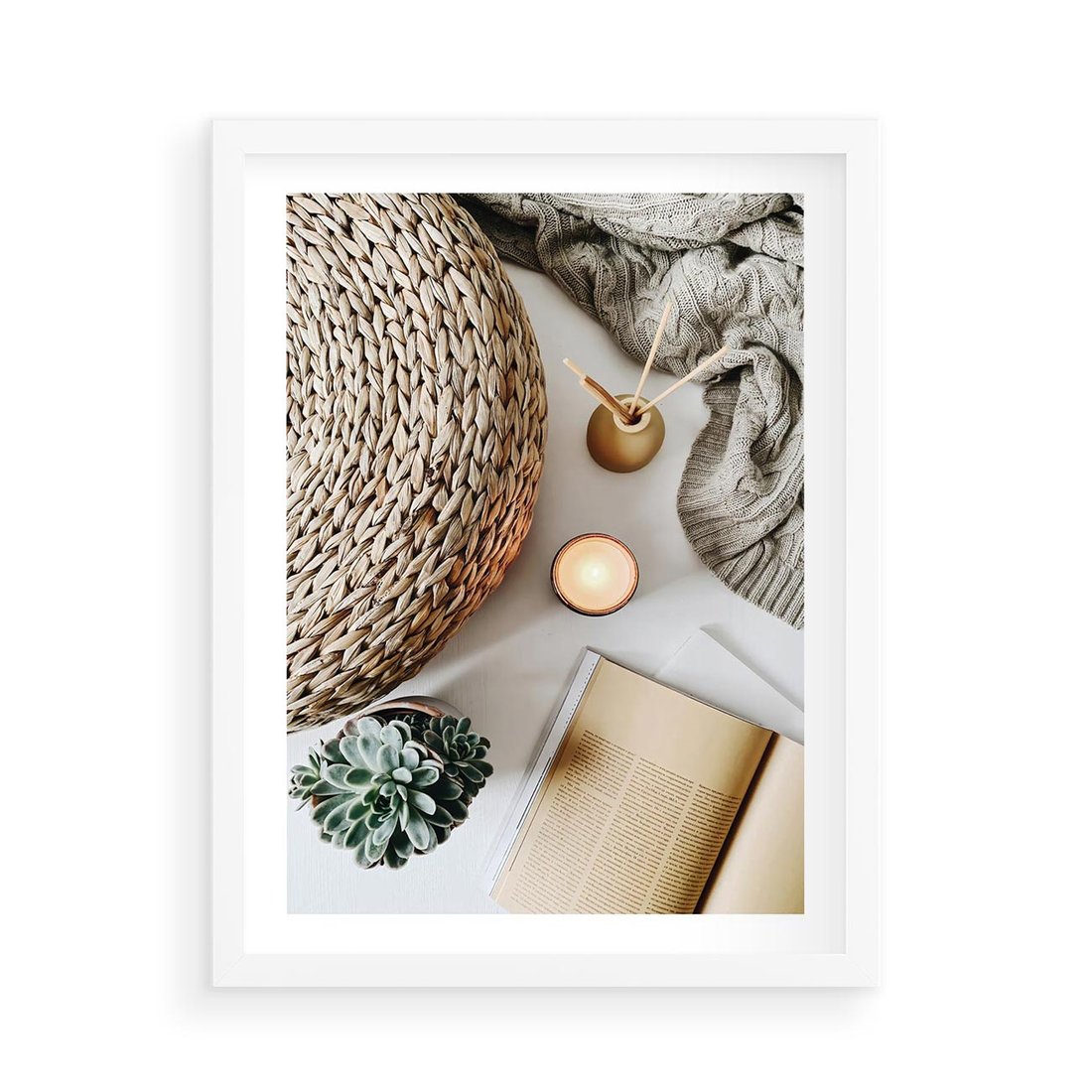 Plakat w ramie 50x70 - Przytulna Kompozycja Lifestyle - kompozycja lifestyle, wiklina - rama biała
