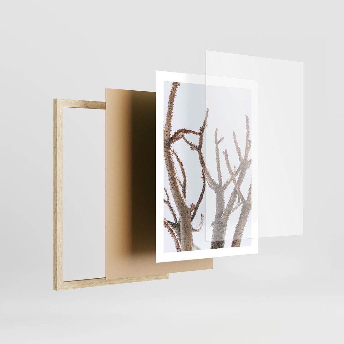 Plakat w ramie 50x70 - Pustynna Harmonia Gałęzi - pustynna roślina, suche gałęzie - rama drewno