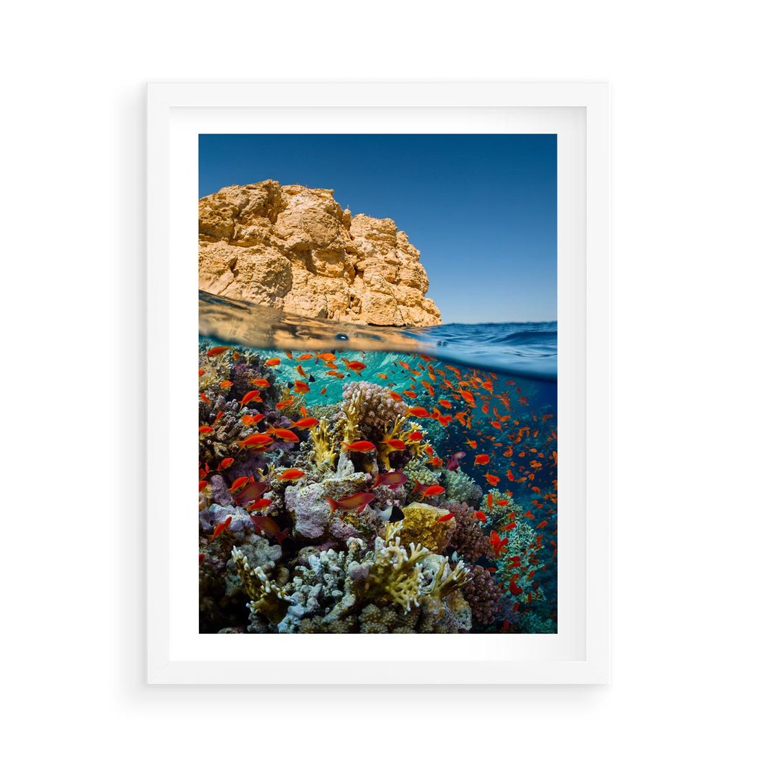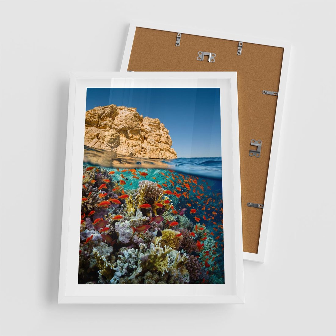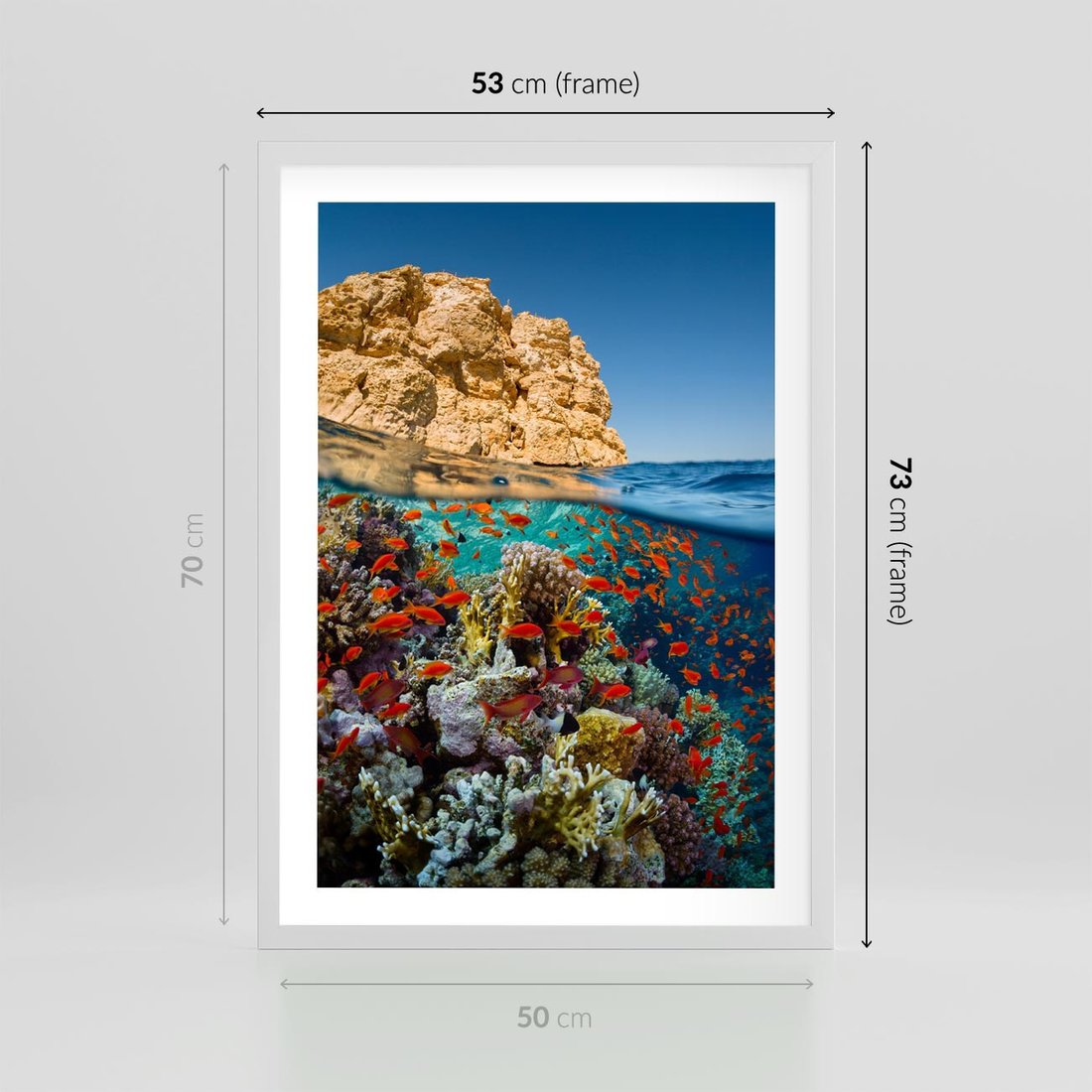 Plakat w ramie 50x70 - Rafa koralowa w oceanie - rafa, koralowa - rama biała
