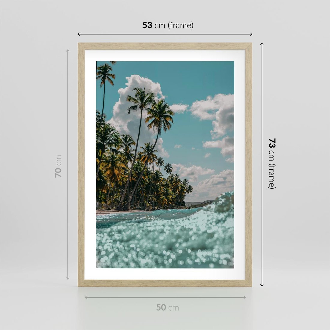Plakat w ramie 50x70 - Rajskie Wakacje - plaża, palmy - rama drewno