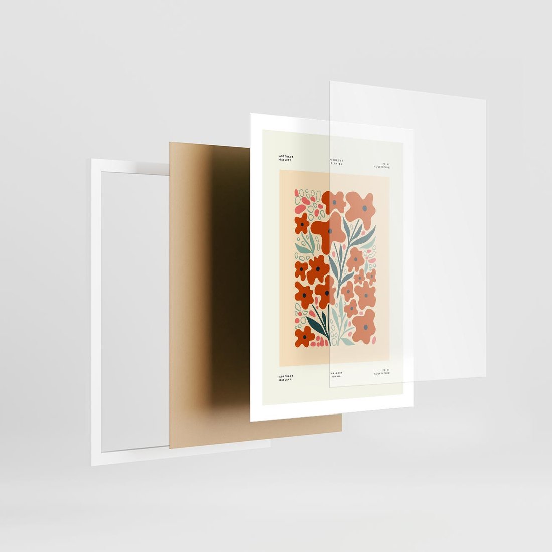 Plakat w ramie 50x70 - Refleksje Kolorowych Tajemnic - kwiaty, kompozycja - rama biała