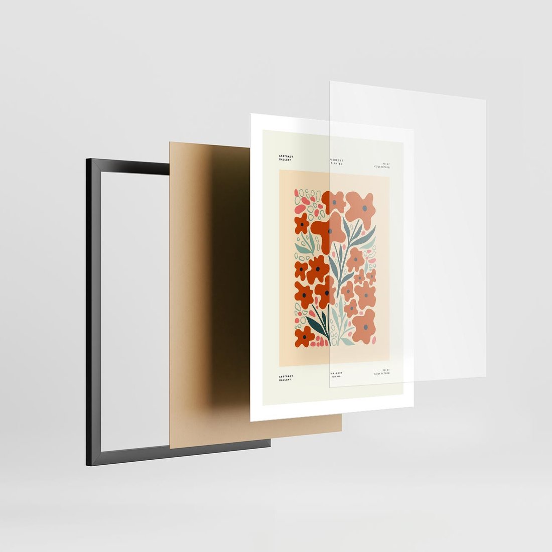 Plakat w ramie 50x70 - Refleksje Kolorowych Tajemnic - kwiaty, kompozycja - rama czarna
