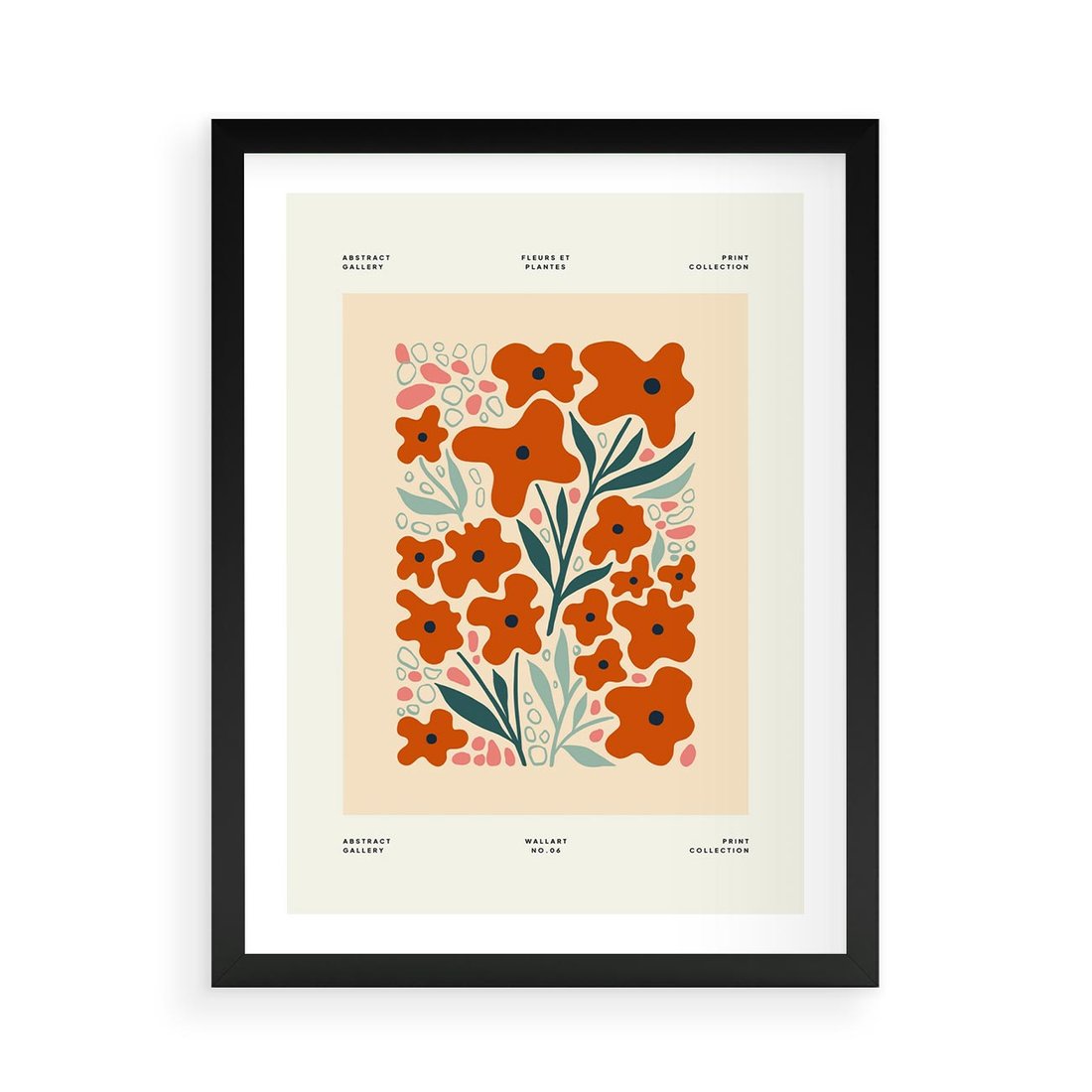 Ta minimalistyczna kompozycja kwiatów w pastelowych kolorach opiera się na graficznych kształtach, oddając esencję minimalizmu. To obraz, który w prosty sposób ukazuje piękno natury, wykorzystując abstrakcyjne formy.