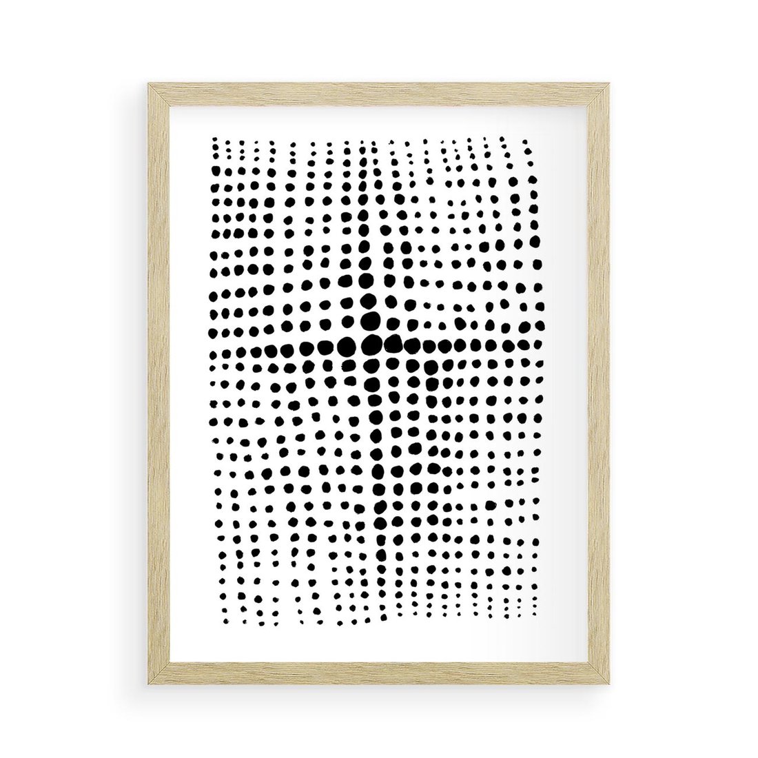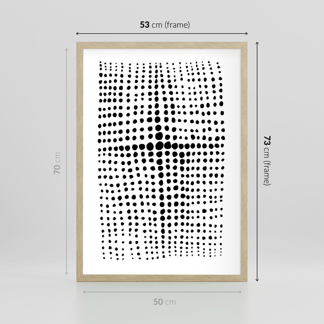 Plakat w ramie 50x70 - Refleksje Monochromatycznych Widoków - abstrakcyjna kompozycja z czarnych kropek, minimalistyczny czarno bialy plakat - rama drewno