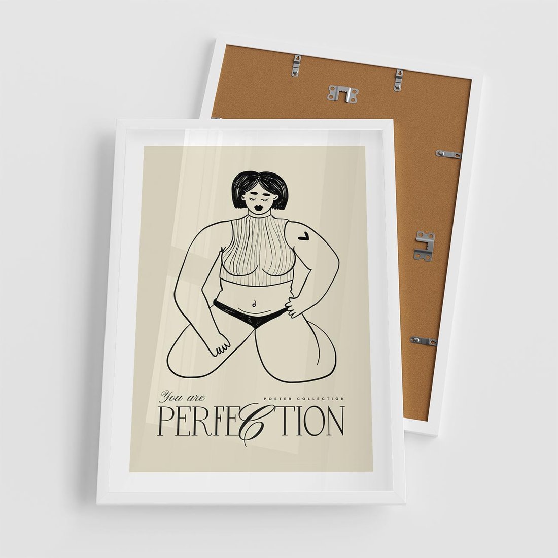 Ten wyjątkowy plakat, z subtelnym rysunkiem kobiety, wyraża piękno samoakceptacji. Wspierana przez poruszające słowa typografii, ta sztuka zachęca do odkrywania siły i pewności siebie we własnej skórze.