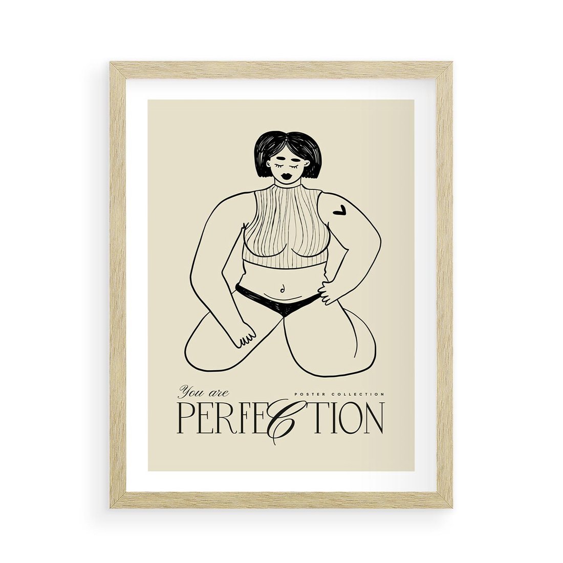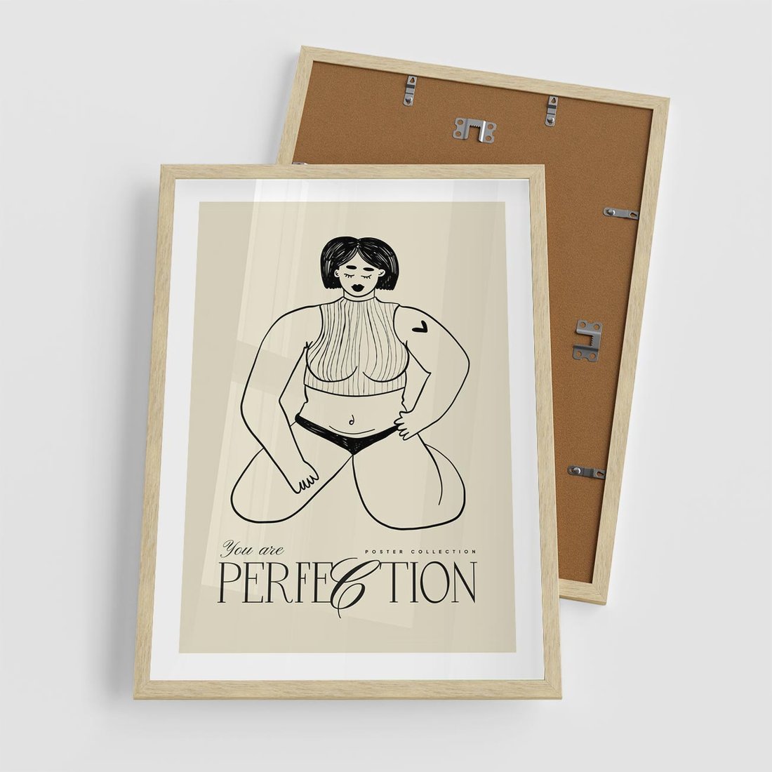 Ten wyjątkowy plakat, z subtelnym rysunkiem kobiety, wyraża piękno samoakceptacji. Wspierana przez poruszające słowa typografii, ta sztuka zachęca do odkrywania siły i pewności siebie we własnej skórze.