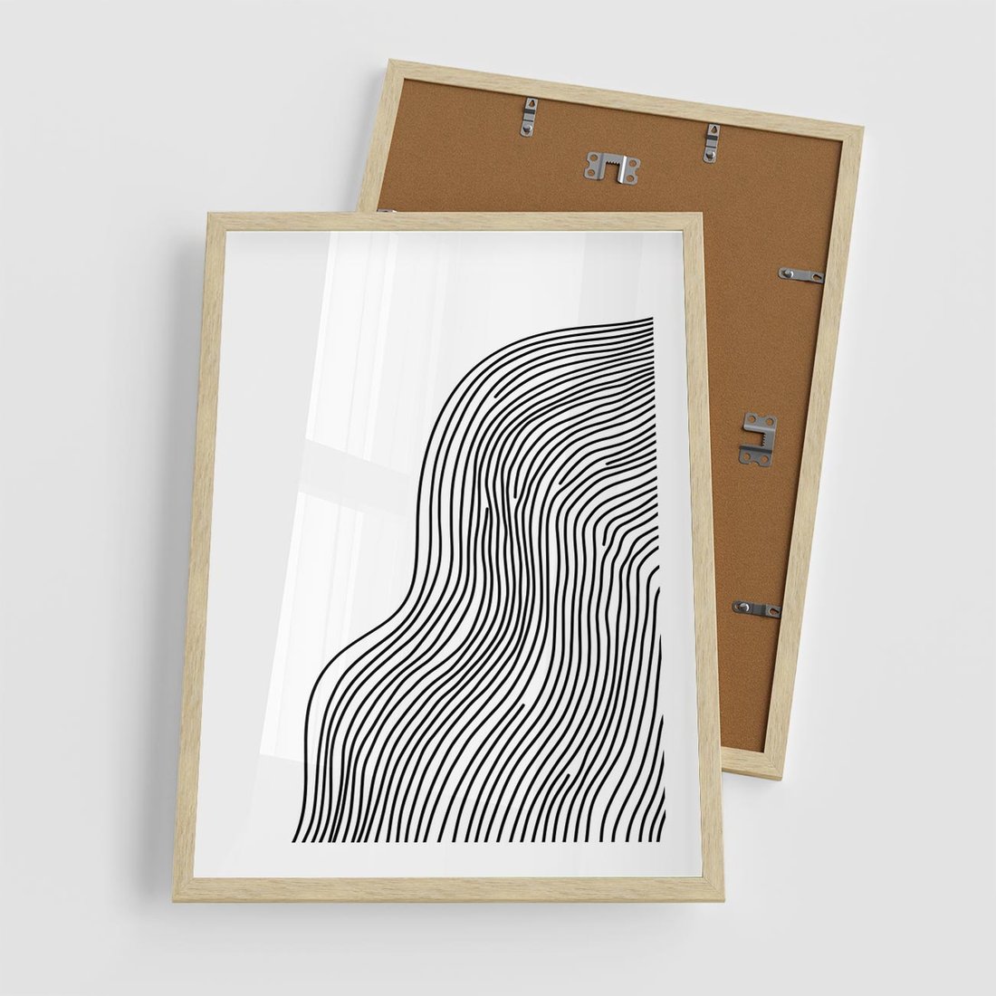 Plakat w ramie 50x70 - Refrakcje Przestrzeni - mnimalistyczna forma, czarne linie - rama drewno