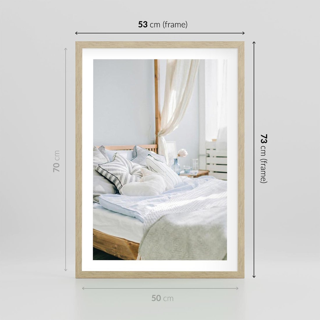 • Plakat w ramie 50x70 - Relaks w Sypialni: Jasne Kolory