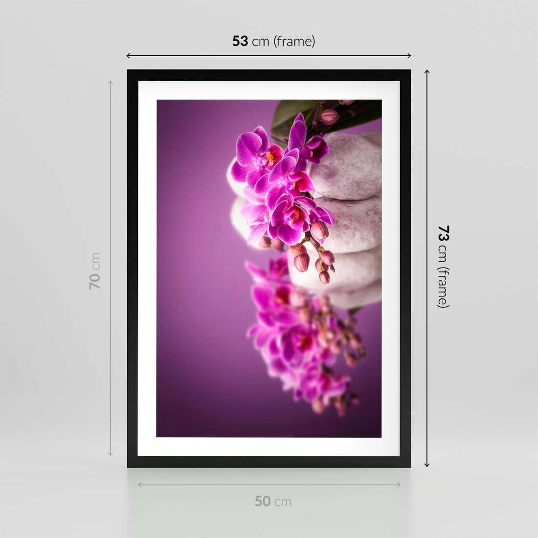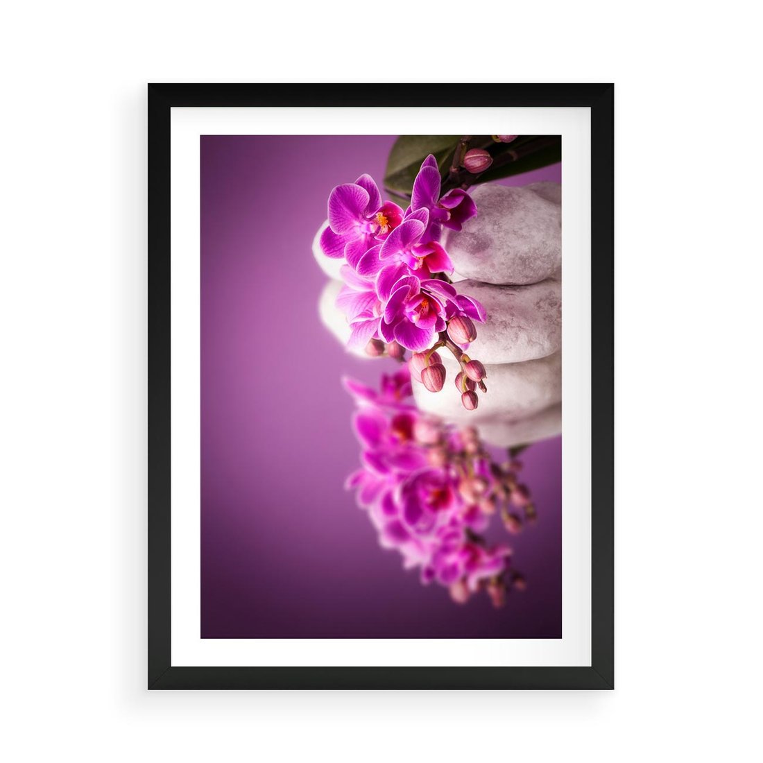 Plakat w ramie 50x70 - Relaksująca orchidea w spa - spa, orchidea - rama czarna