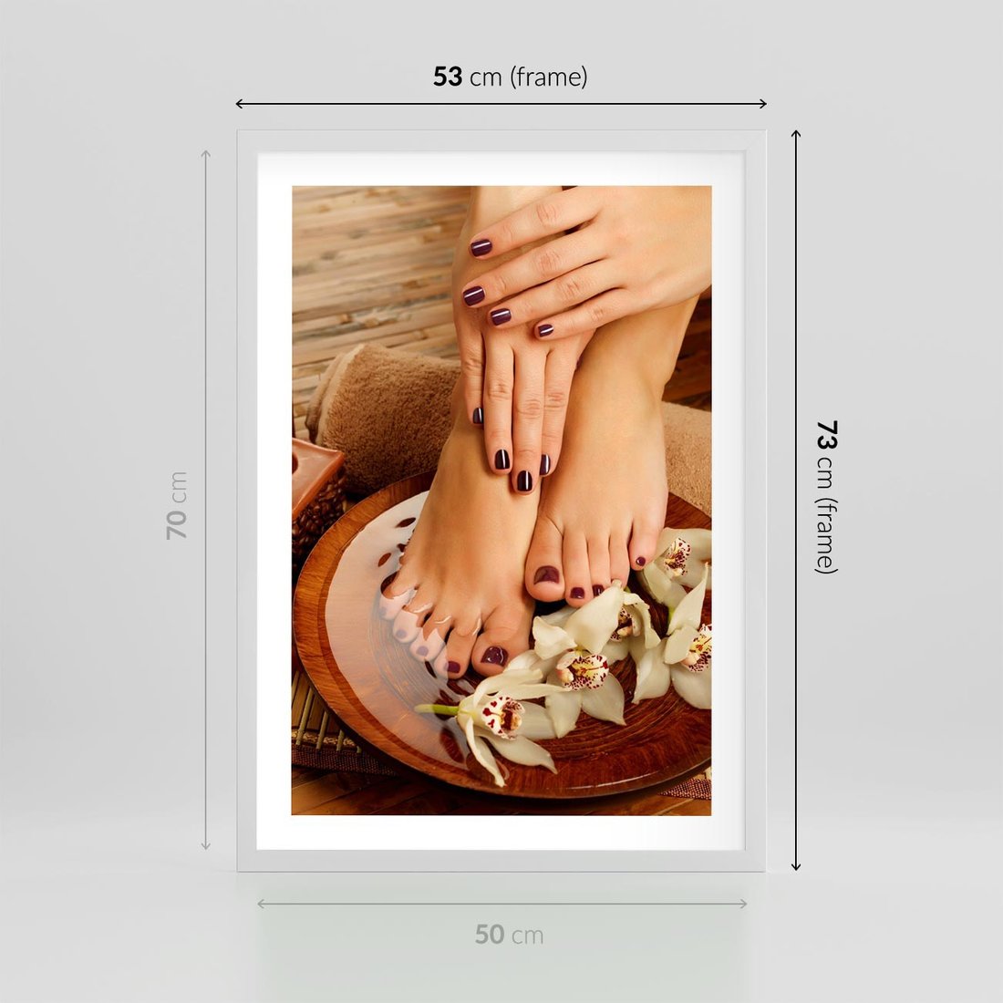 Plakat w ramie 50x70 - Relaksujące Spa i Perfekcyjny Manicure - spa, paznokcie - rama biała