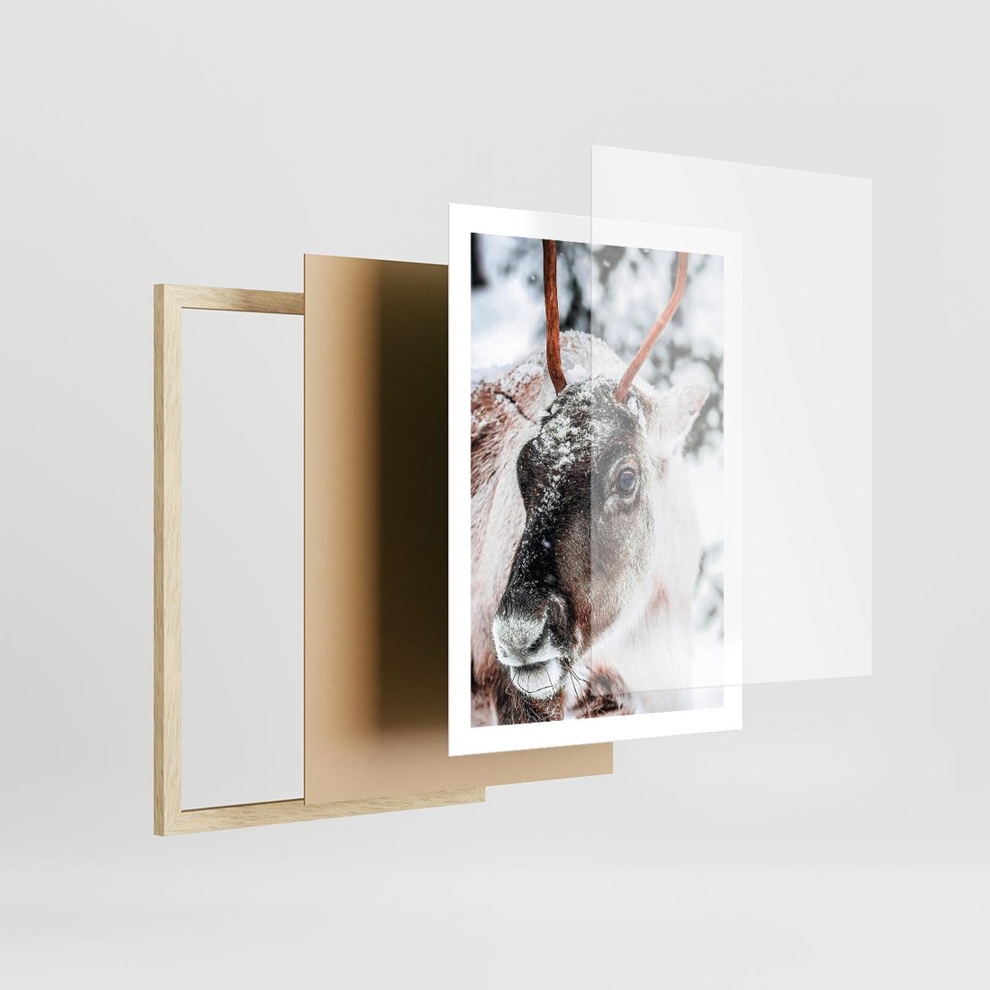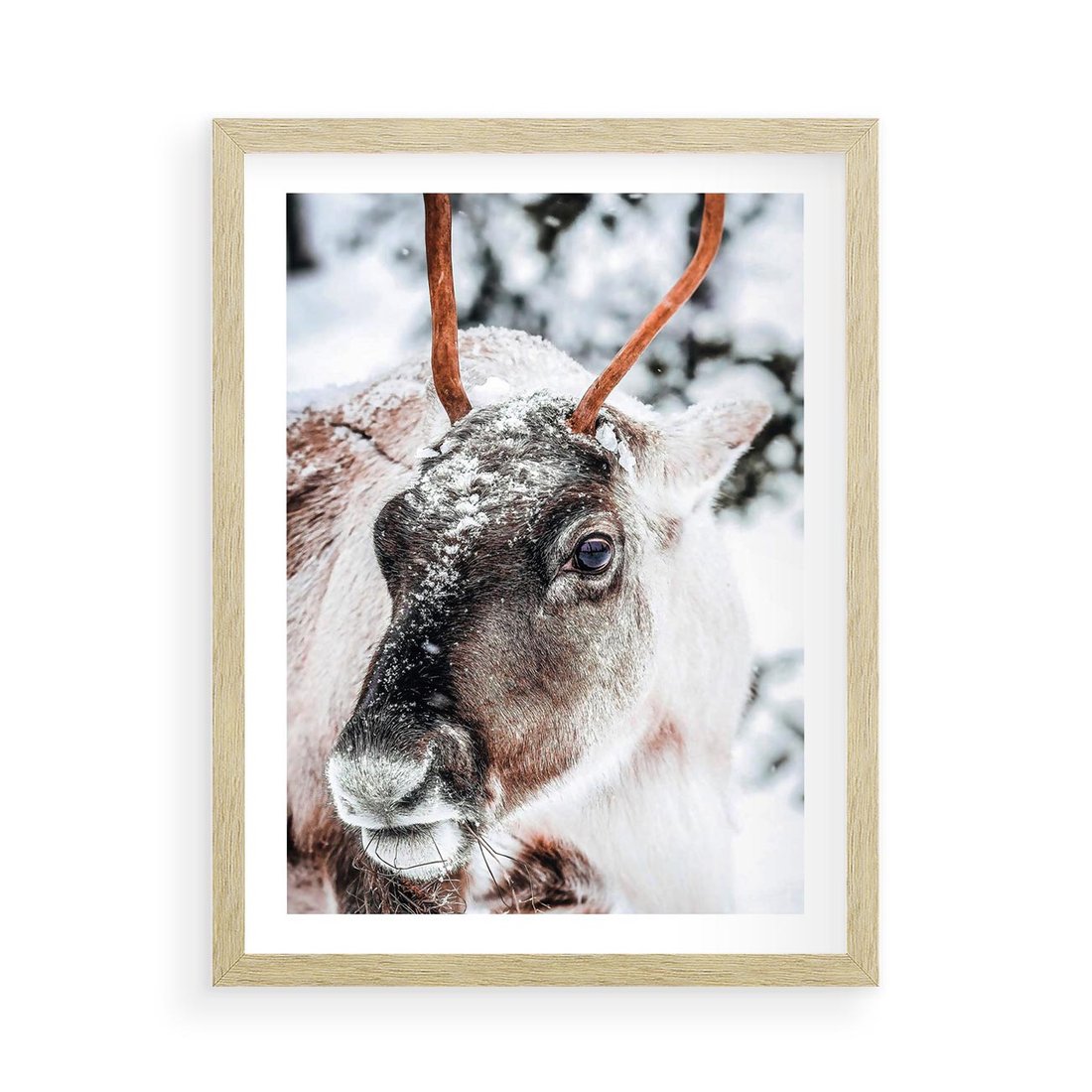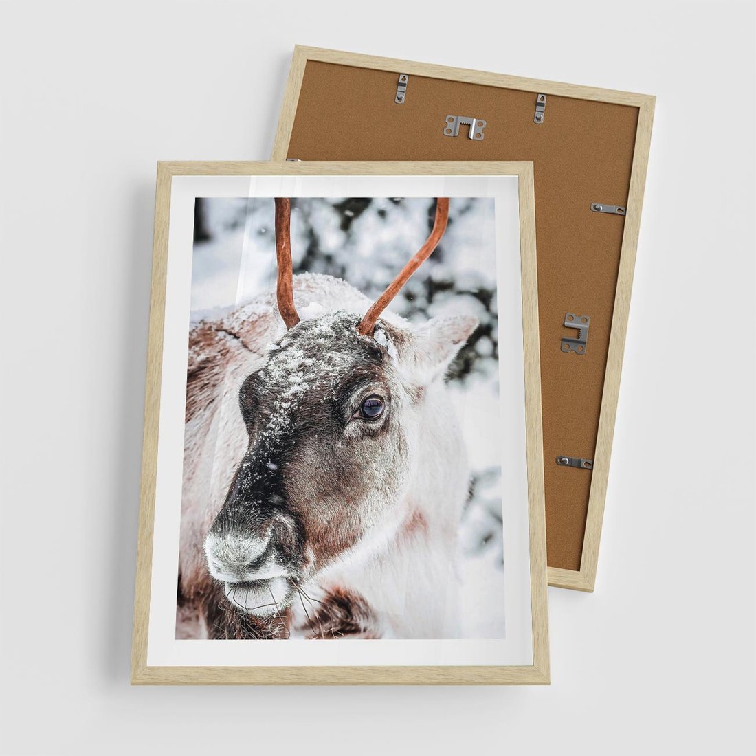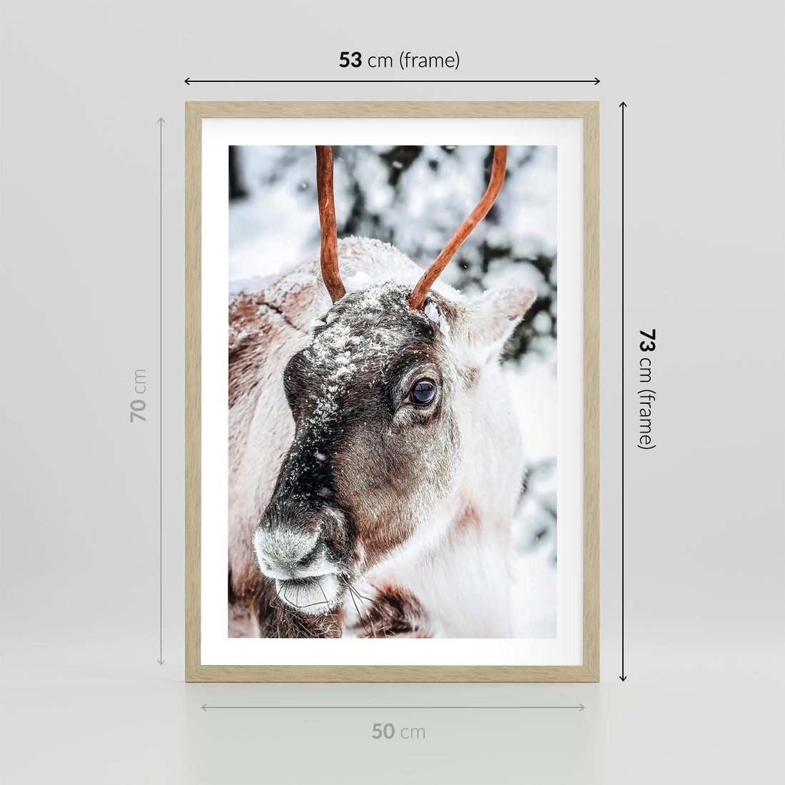 Plakat w ramie 50x70 - Renifer w Zimowej Krainie - renifer, zima - rama drewno