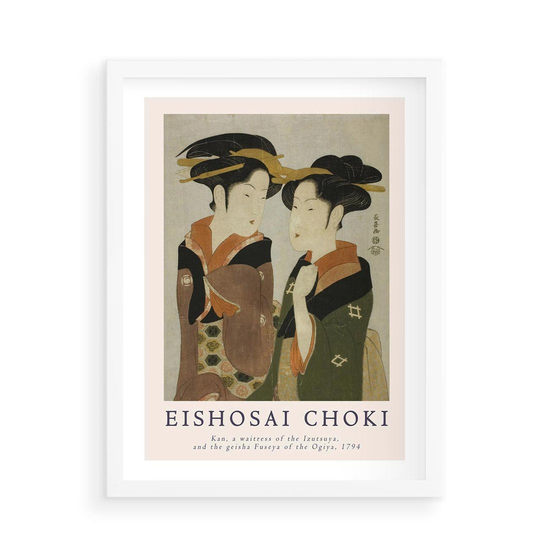 Plakat w ramie 50x70 - Reprodukcja Japońskiej Grafiki - eishosai choki, reprodukcja grafiki - rama biała