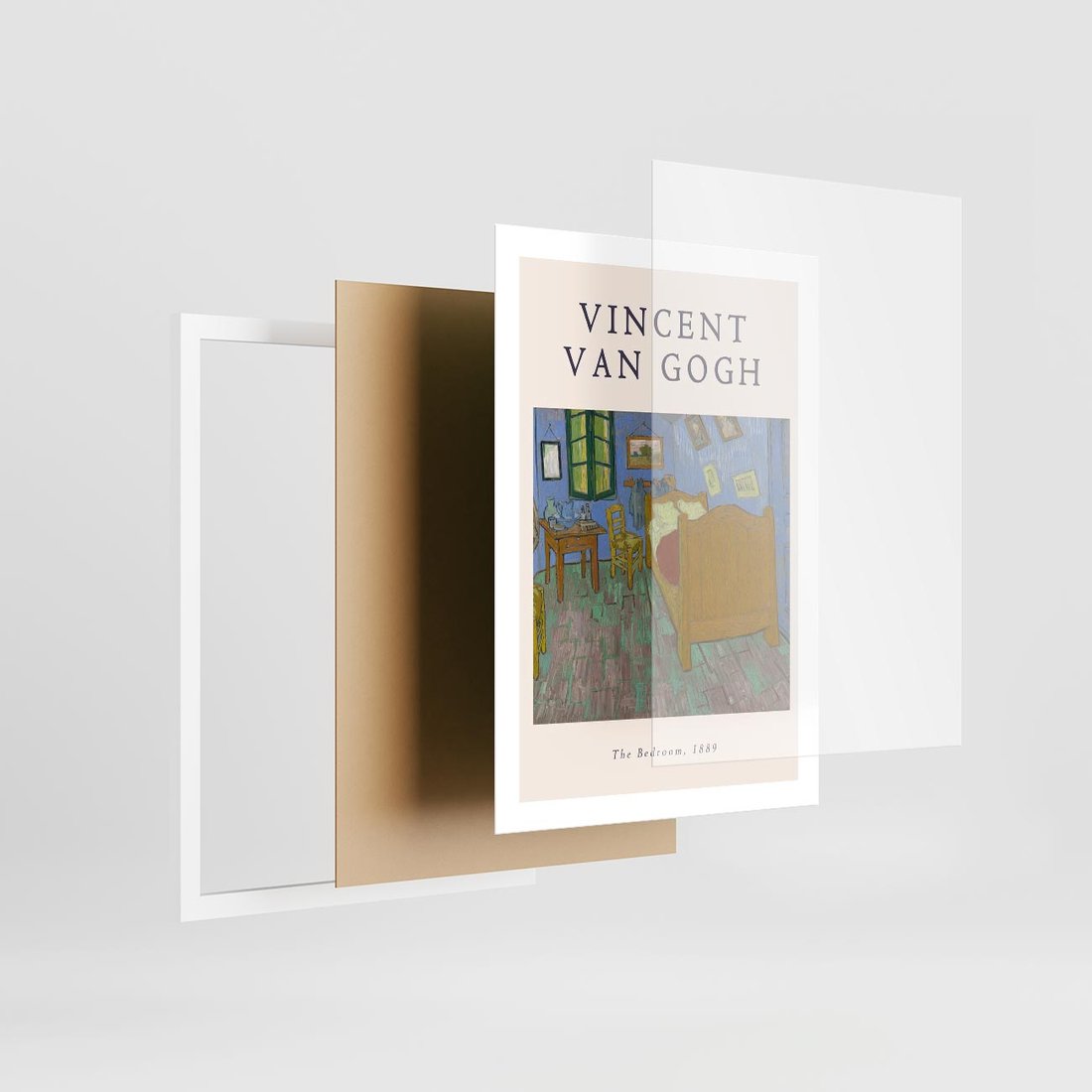 To jest reprodukcja słynnego dzieła Vincenta van Gogha, która przedstawia charakterystyczny pokój artysty. Plakat ten zachwyca widza pięknem oryginalnego obrazu.