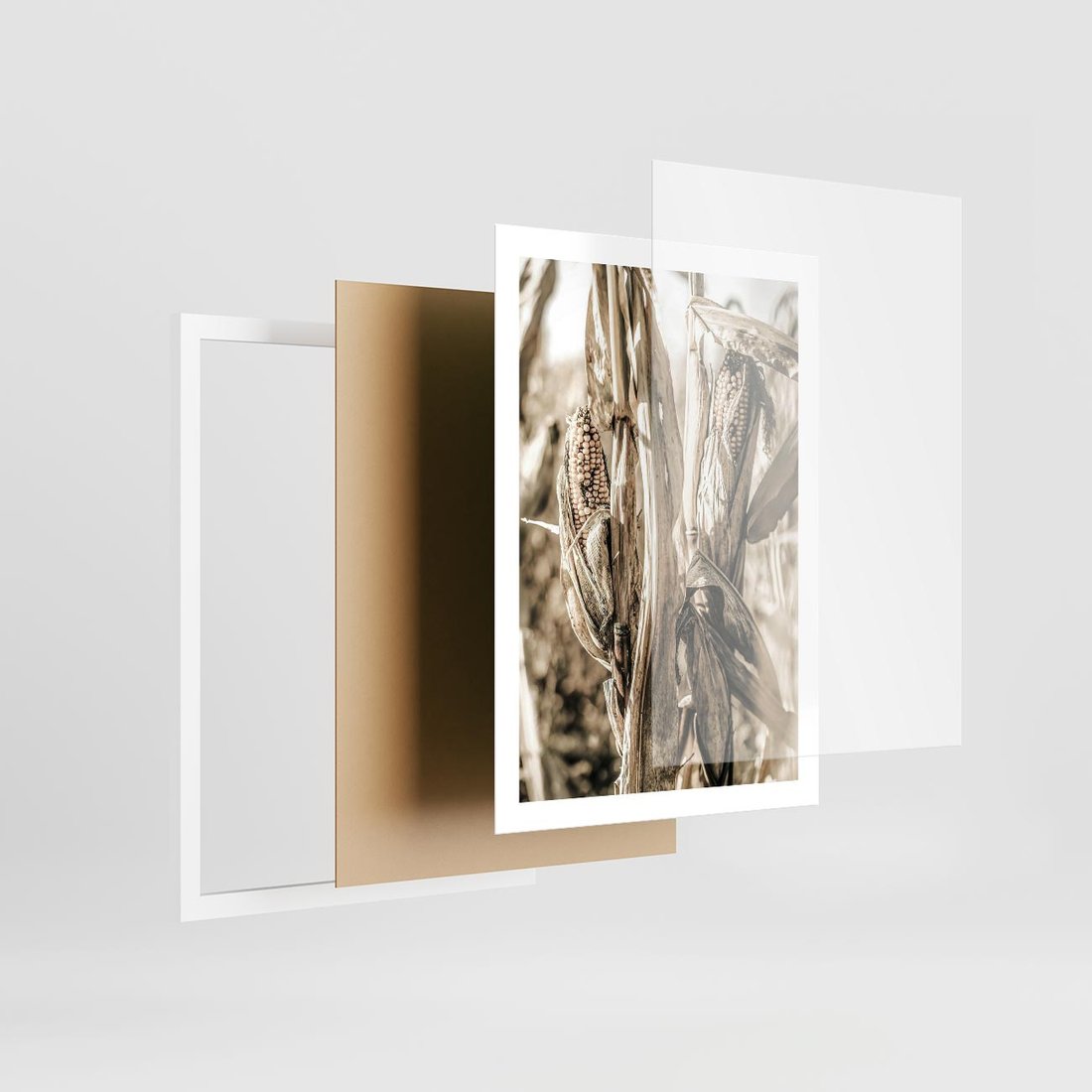 Plakat w ramie 50x70 - Retro Pole Kukurydzy - retro zdjęcie, sepia - rama biała