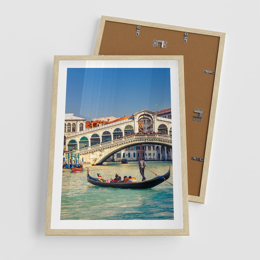 Plakat w ramie 50x70 - Romantyczna przejażdżka gondolą w Wenecji - Wenecja, gondola - rama drewno
