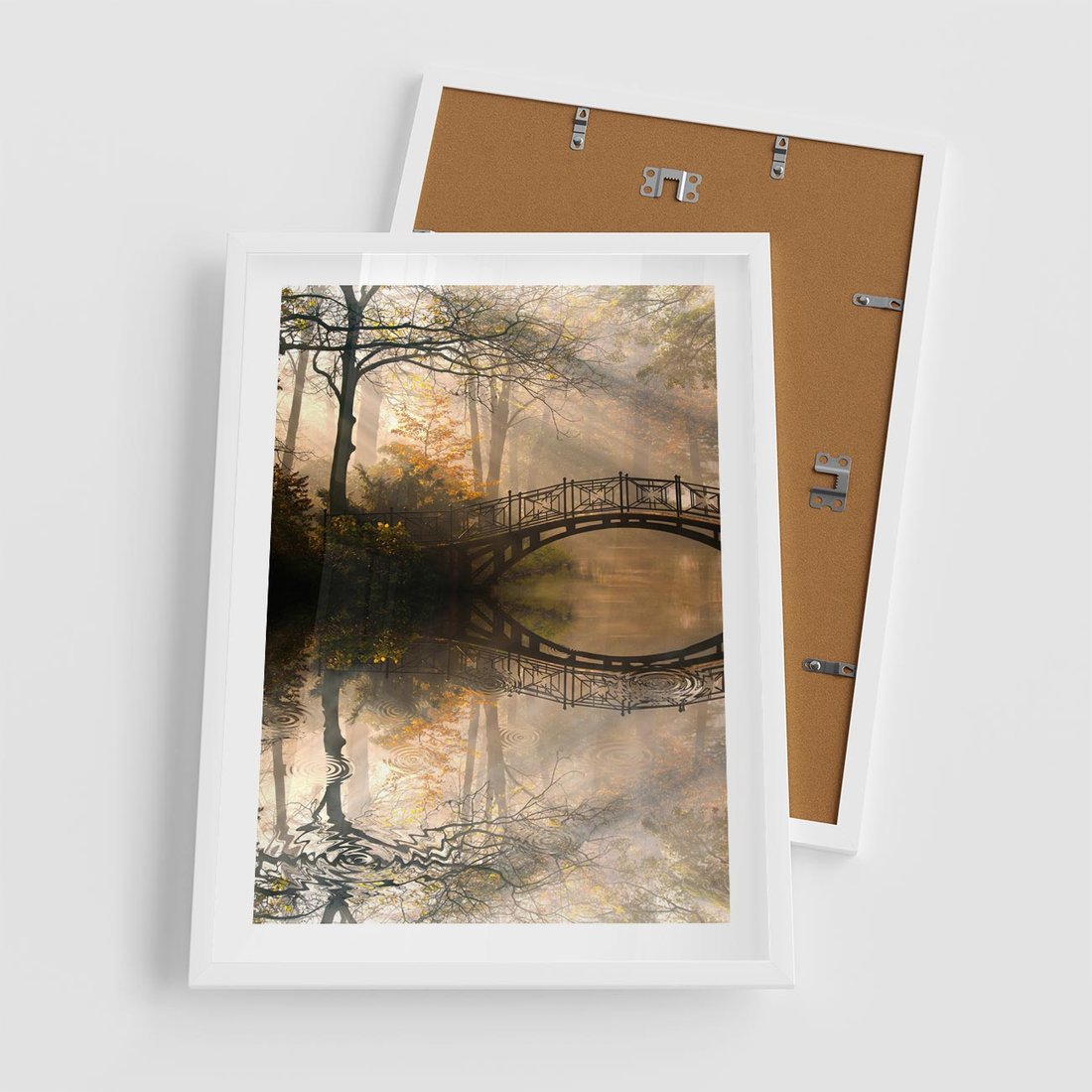Plakat w ramie 50x70 - Romantyczny Mostek - mostek, romantyczny - rama biała