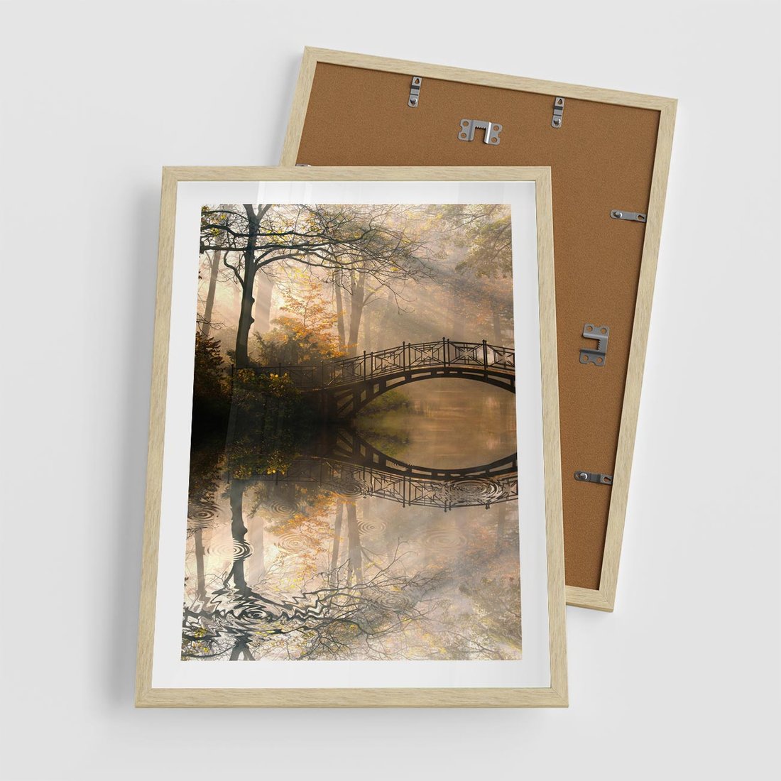 Plakat w ramie 50x70 - Romantyczny Mostek - mostek, romantyczny - rama drewno