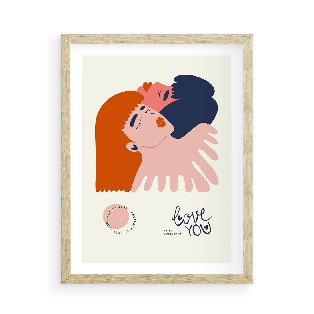 Ten graficzny obraz przedstawiający parę zakochanych jest odzwierciedleniem miłości w nowoczesnym, minimalistycznym stylu. Pastelowe kolory i wyraźne formy tworzą dynamiczną kompozycję, oddającą piękno uczucia we współczesnym kontekście. To idealny wybór dla tych, którzy pragną podkreślić romantyzm w sposób nowatorski i elegancki.