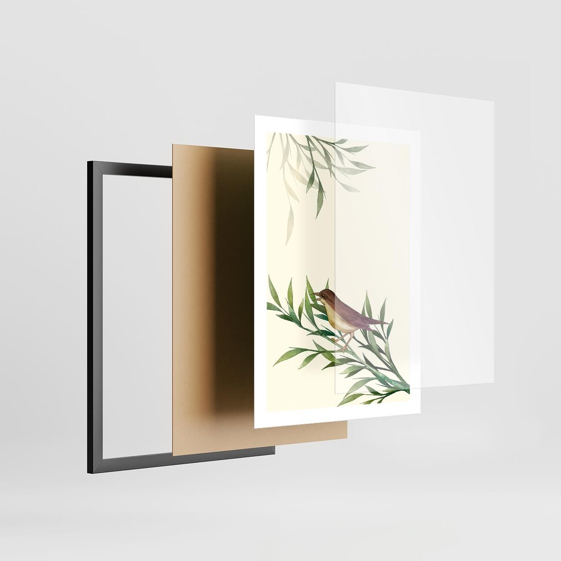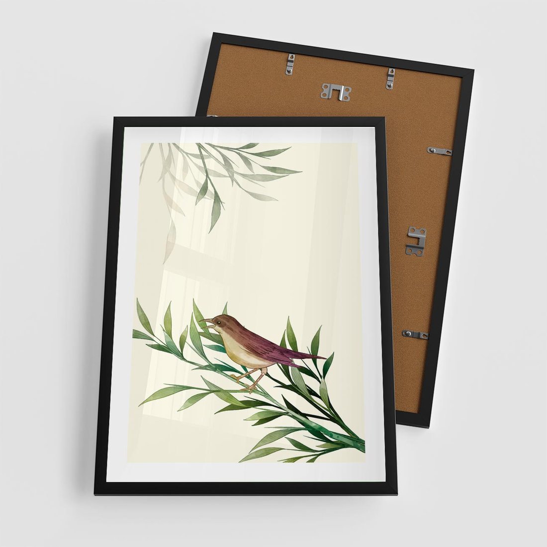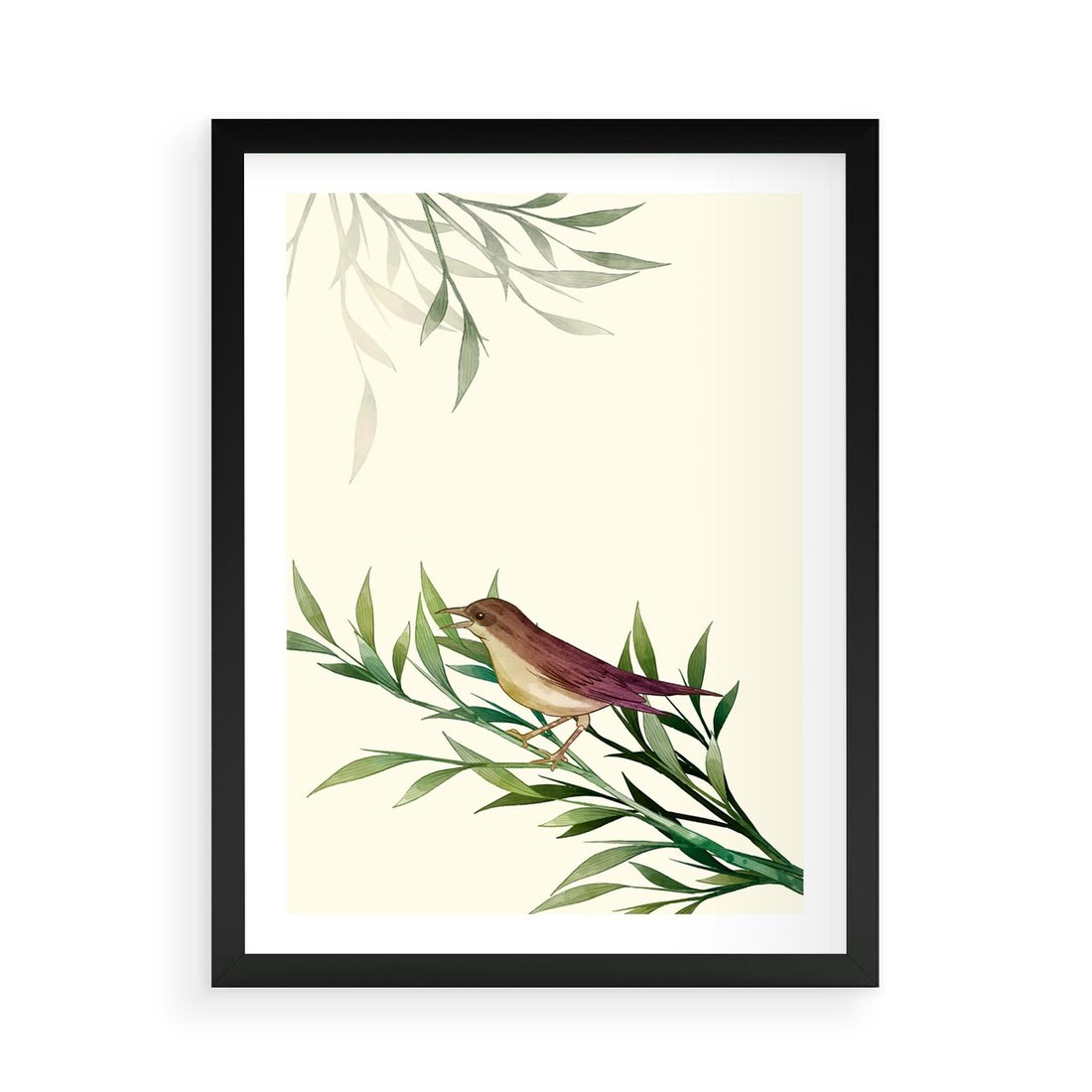 Plakat w ramie 50x70 - Roślinne Nastroje - japońska sztuka, ptak - rama czarna