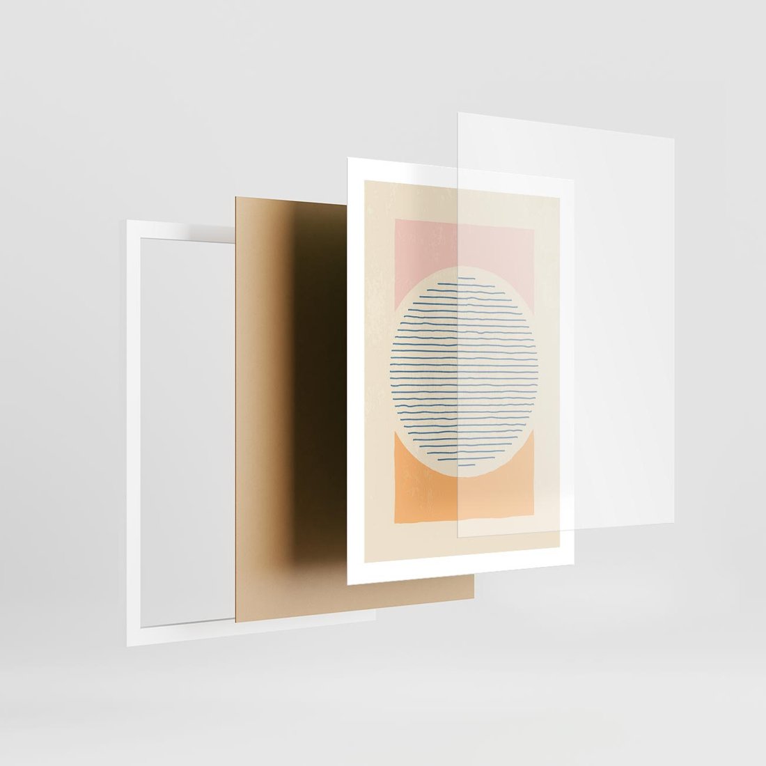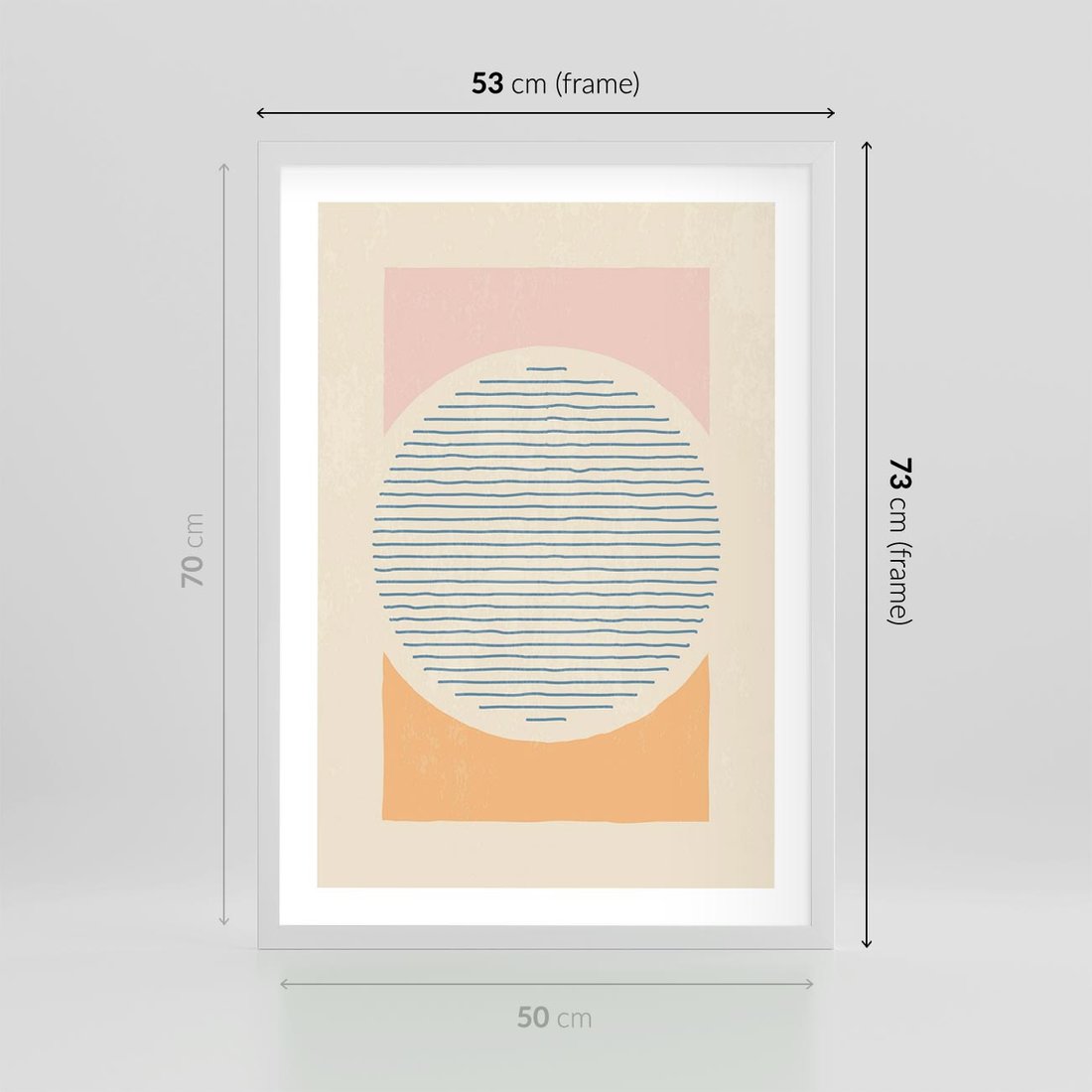 Geometryczne kształty w subtelnych pastelowych odcieniach tworzą harmonijną kompozycję. Minimalistyczny design z dominującymi kołami dodaje wyjątkowego uroku.