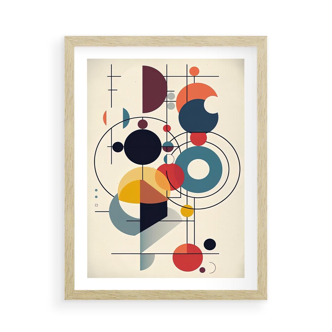 Plakat w ramie 50x70 - Rozbijające Barwne Granice - abstrakcyjna geometryczna kompozycja, koła linie - rama drewno