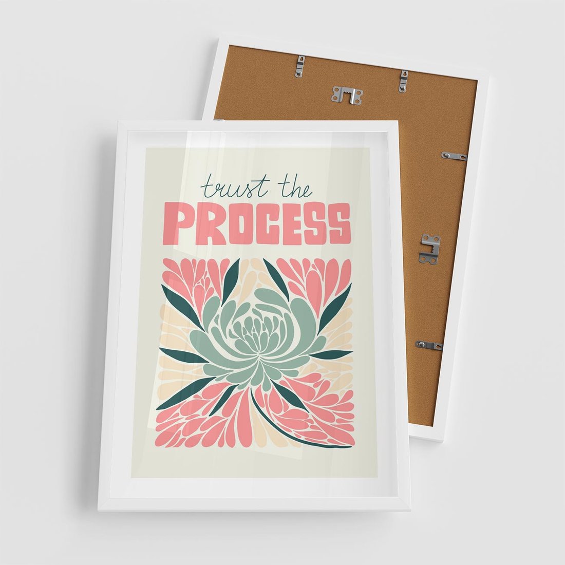 Plakat w ramie 50x70 - Rozbijające Barwy - abstrakcyjny pastelowy kwiat, wyrazista typografia - rama biała