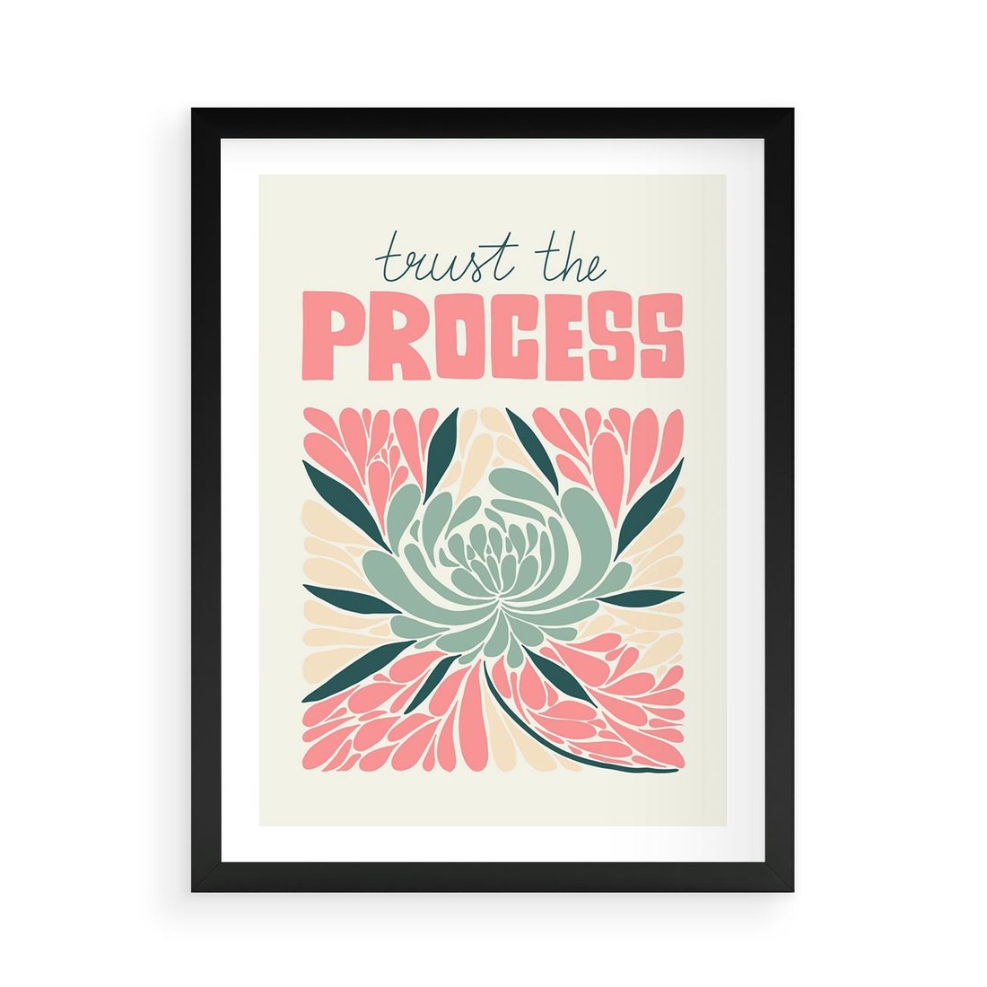 Ta nowoczesna sztuka łączy abstrakcyjny pastelowy kwiat z wyrazistą typografią, tworząc harmonijną kompozycję. Sztuka ta przenosi nas w delikatny świat estetyki, inspirując do refleksji i postrzegania piękna w subtelności.