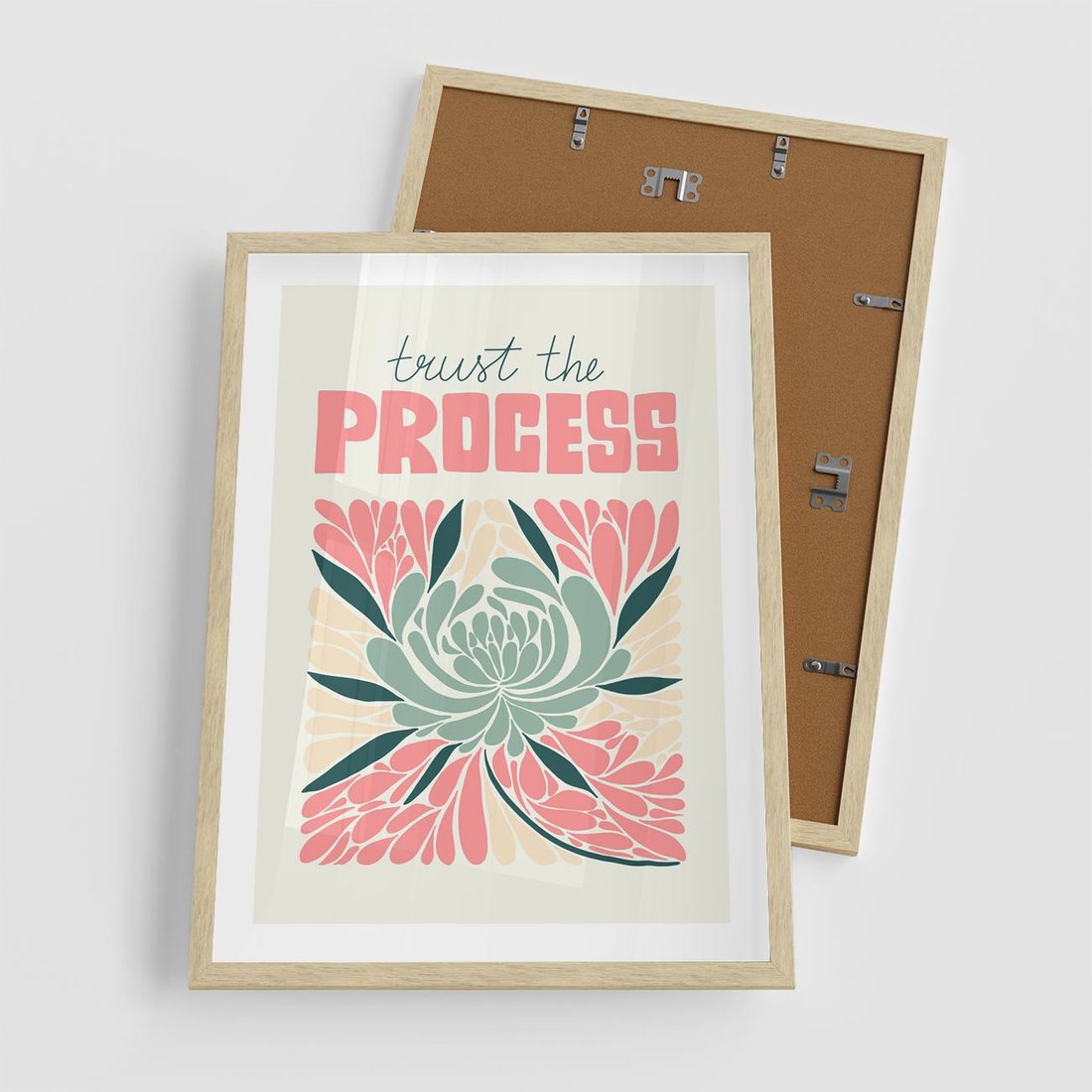 Ta nowoczesna sztuka łączy abstrakcyjny pastelowy kwiat z wyrazistą typografią, tworząc harmonijną kompozycję. Sztuka ta przenosi nas w delikatny świat estetyki, inspirując do refleksji i postrzegania piękna w subtelności.