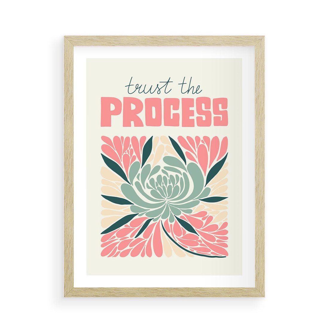 Plakat w ramie 50x70 - Rozbijające Barwy - abstrakcyjny pastelowy kwiat, wyrazista typografia - rama drewno