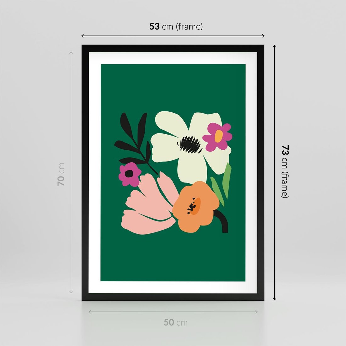 Plakat w ramie 50x70 - Rozbijające Echa - abstrakcyjne kwiaty, zielone tło - rama czarna